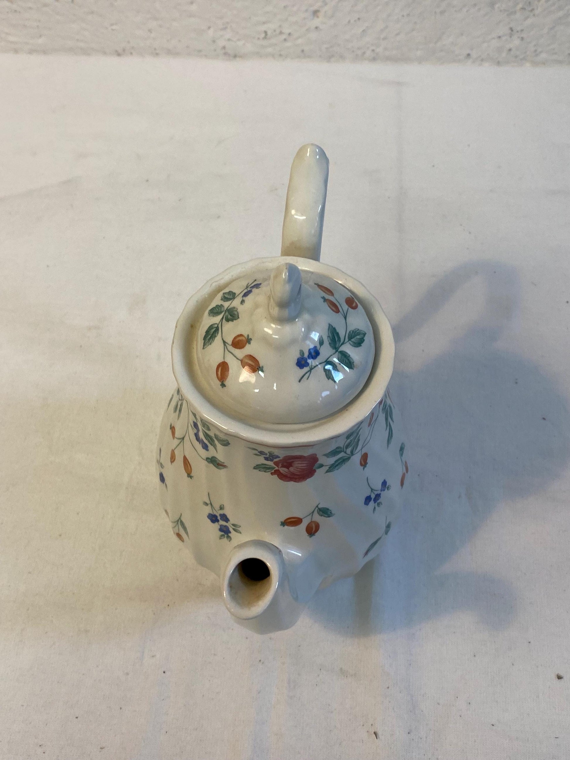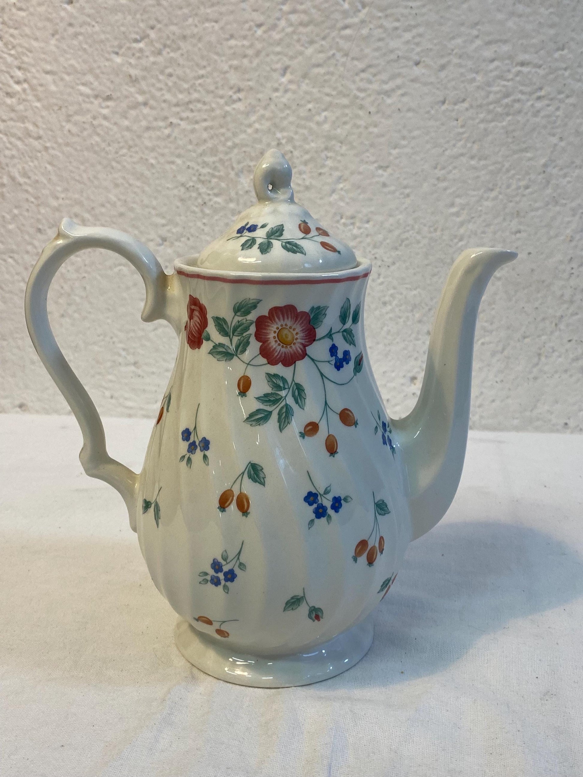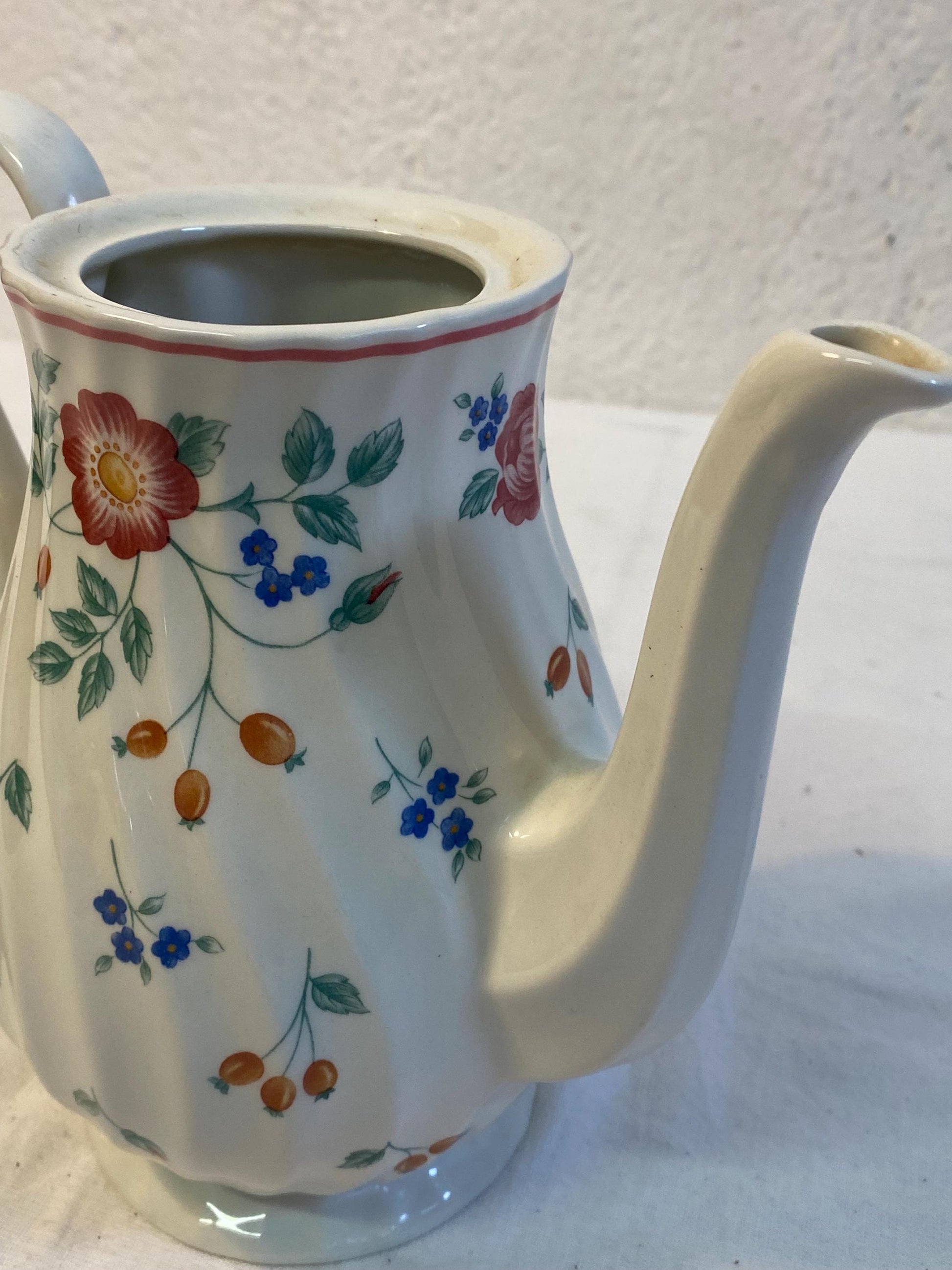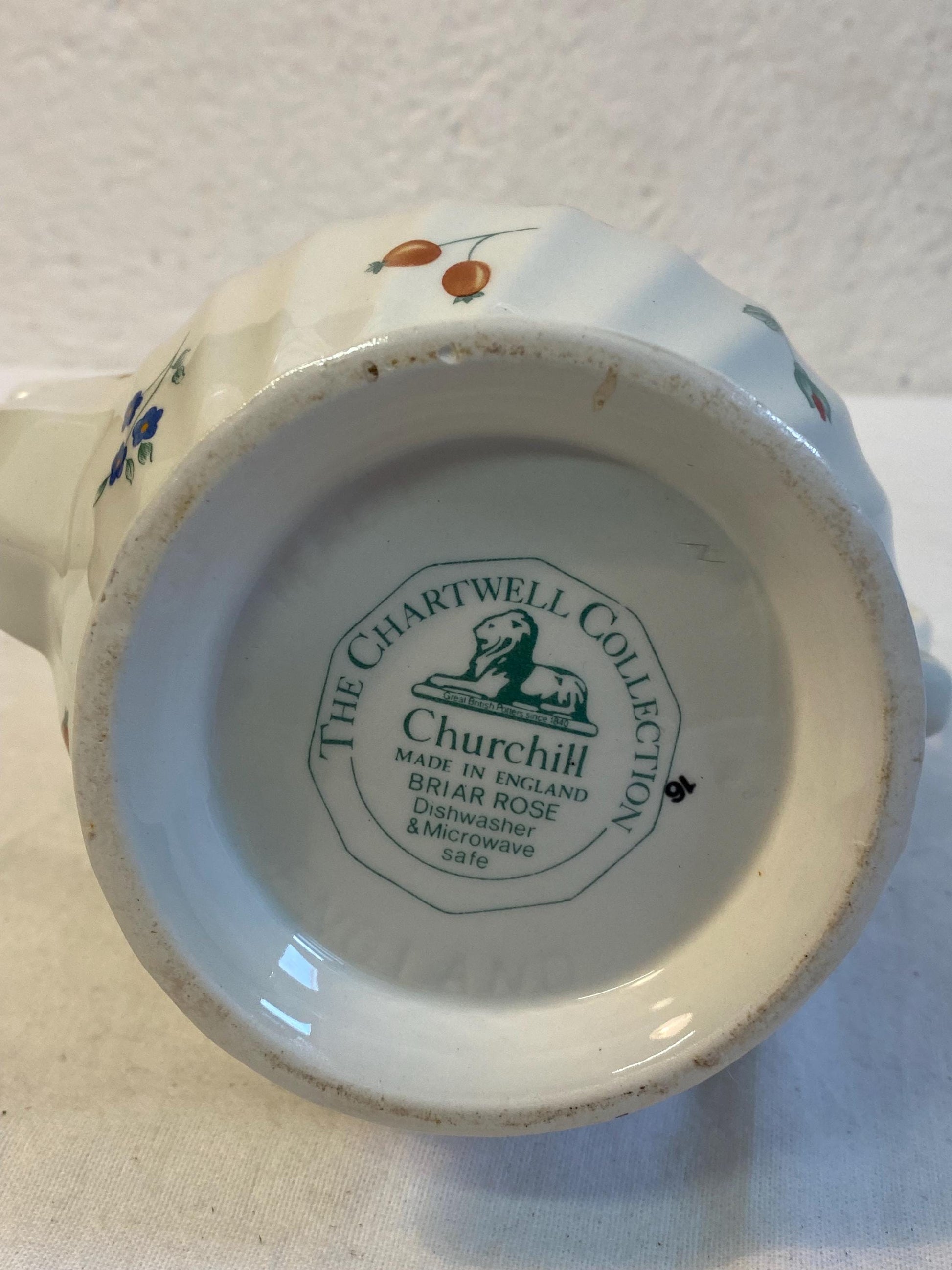 An elegant teapot from Churchill's Chartwell Collection, Briar Rose model, made in England. Decorated with delicate floral motifs across the surface, it's a perfect collector's item or a perfect addition to your table with a refined, vintage touch. Durable and practical, it's dishwasher and microwave safe, as indicated on the base.