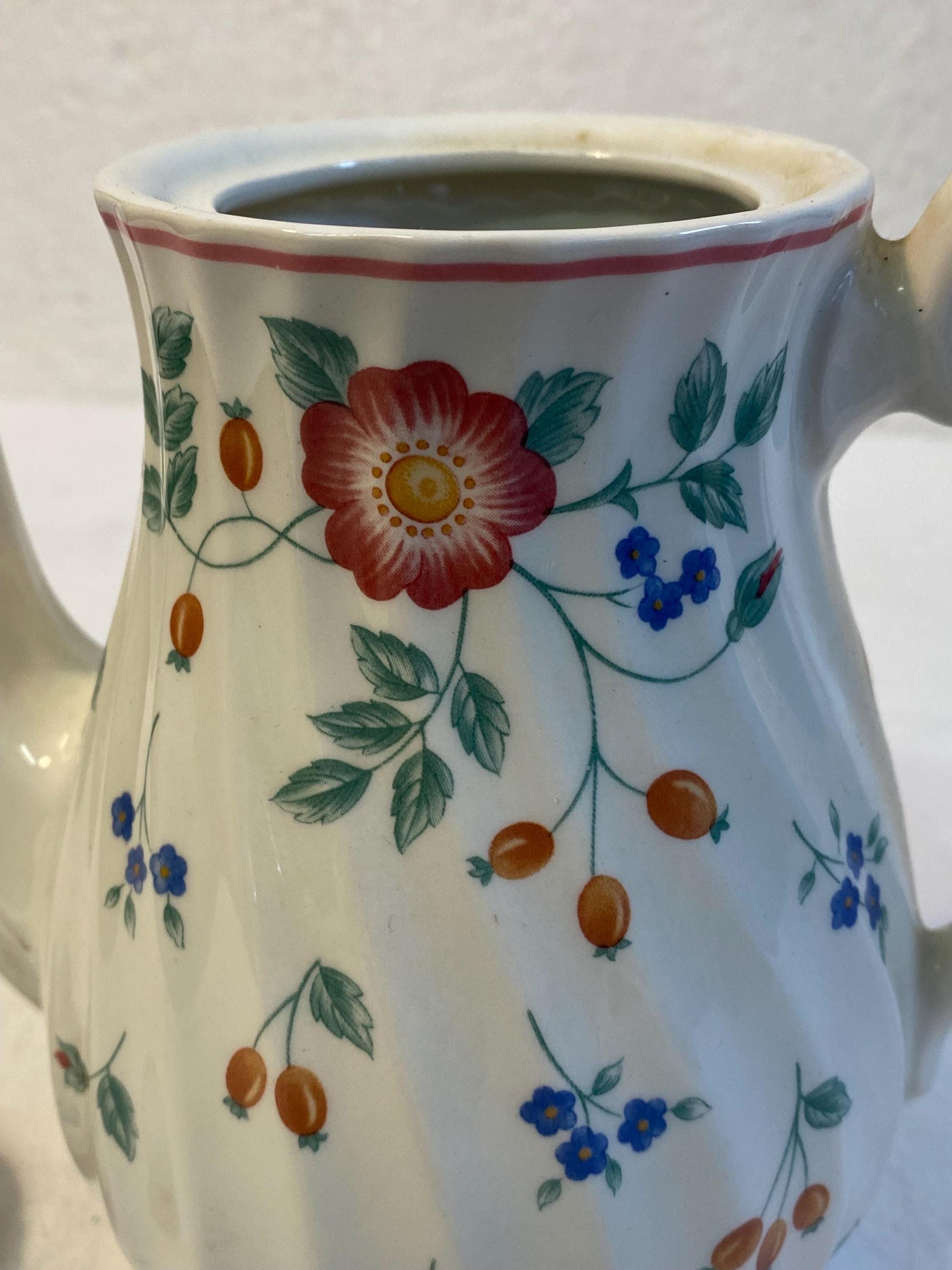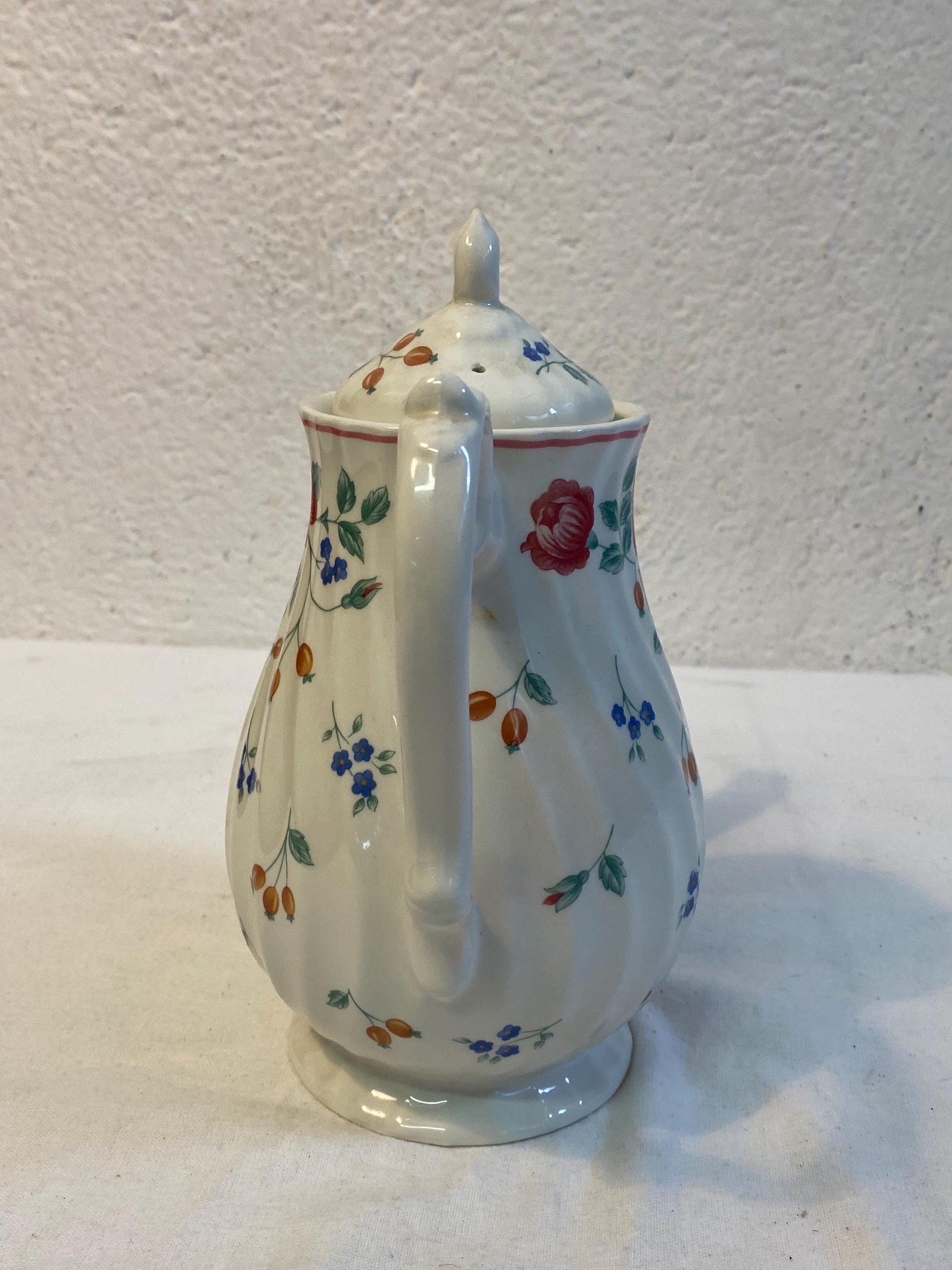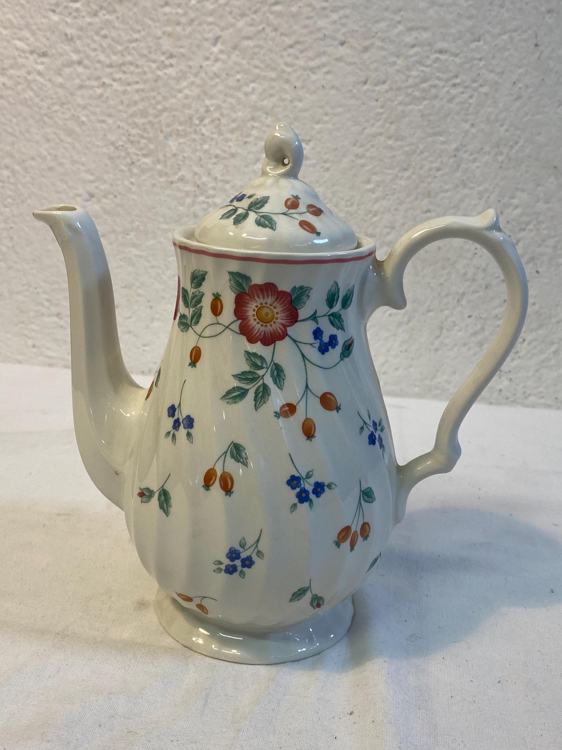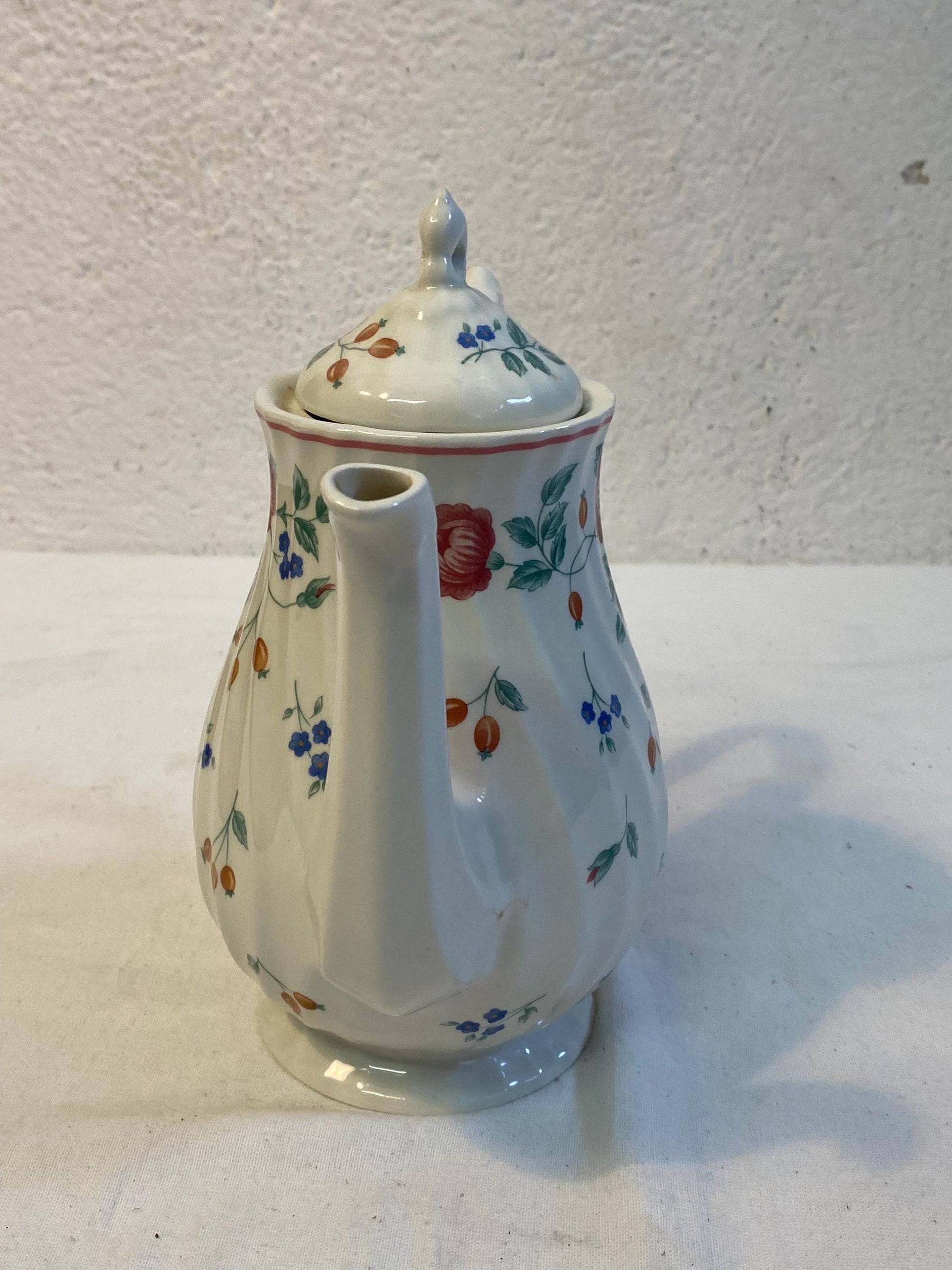 An elegant teapot from Churchill's Chartwell Collection, Briar Rose model, made in England. Decorated with delicate floral motifs across the surface, it's a perfect collector's item or a perfect addition to your table with a refined, vintage touch. Durable and practical, it's dishwasher and microwave safe, as indicated on the base.