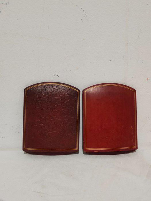 Questa splendida coppia di fermalibri, realizzata in legno pregiato e rivestita in pelle di alta qualità, rappresenta un vero e proprio oggetto d‘arredo di grande fascino e valore. Il design classico ed elegante, unito alla cura artigianale dei dettagli e alla scelta di materiali pregiati, rende questi fermalibri un complemento perfetto per qualsiasi libreria, sia classica che moderna.