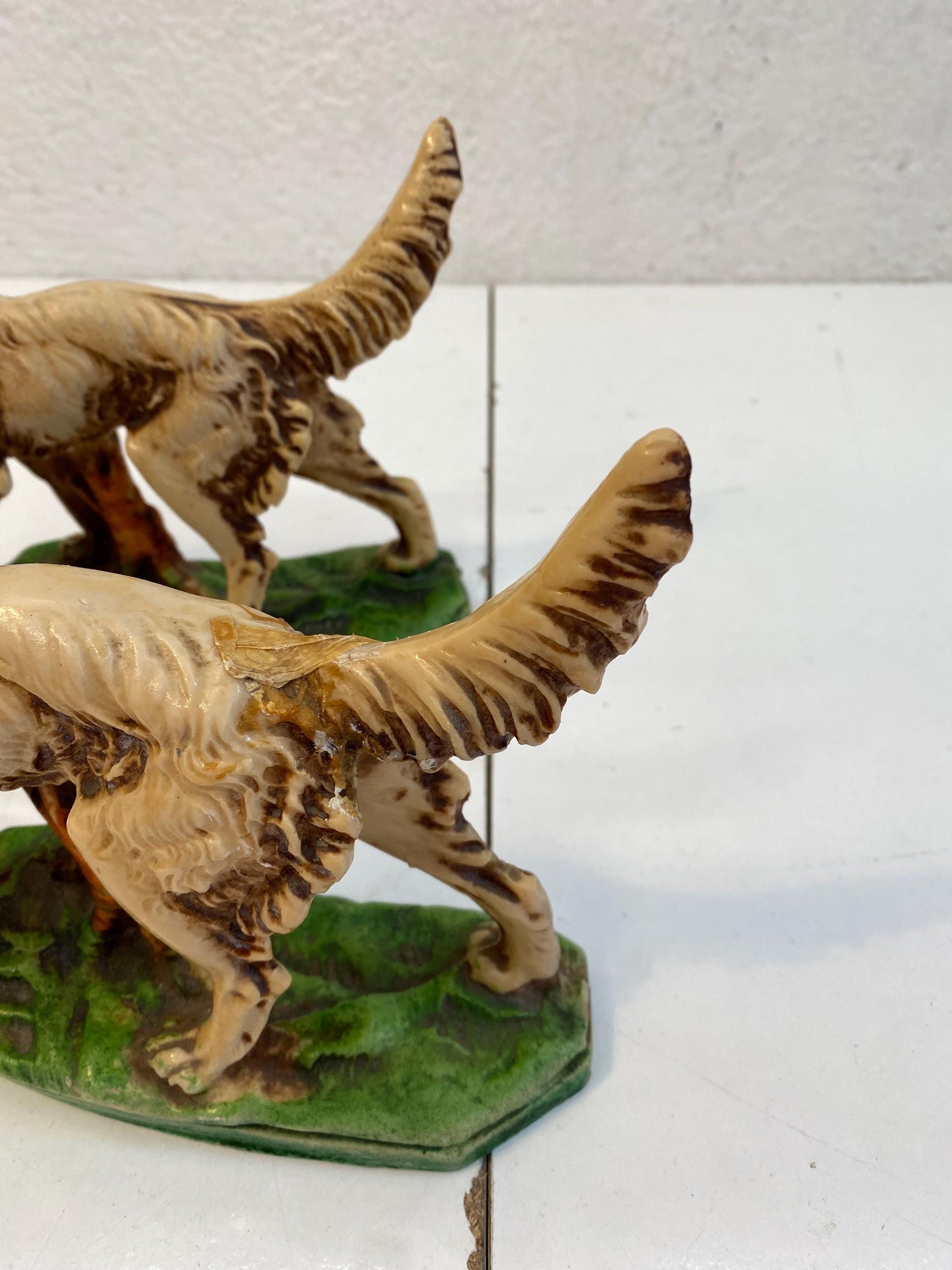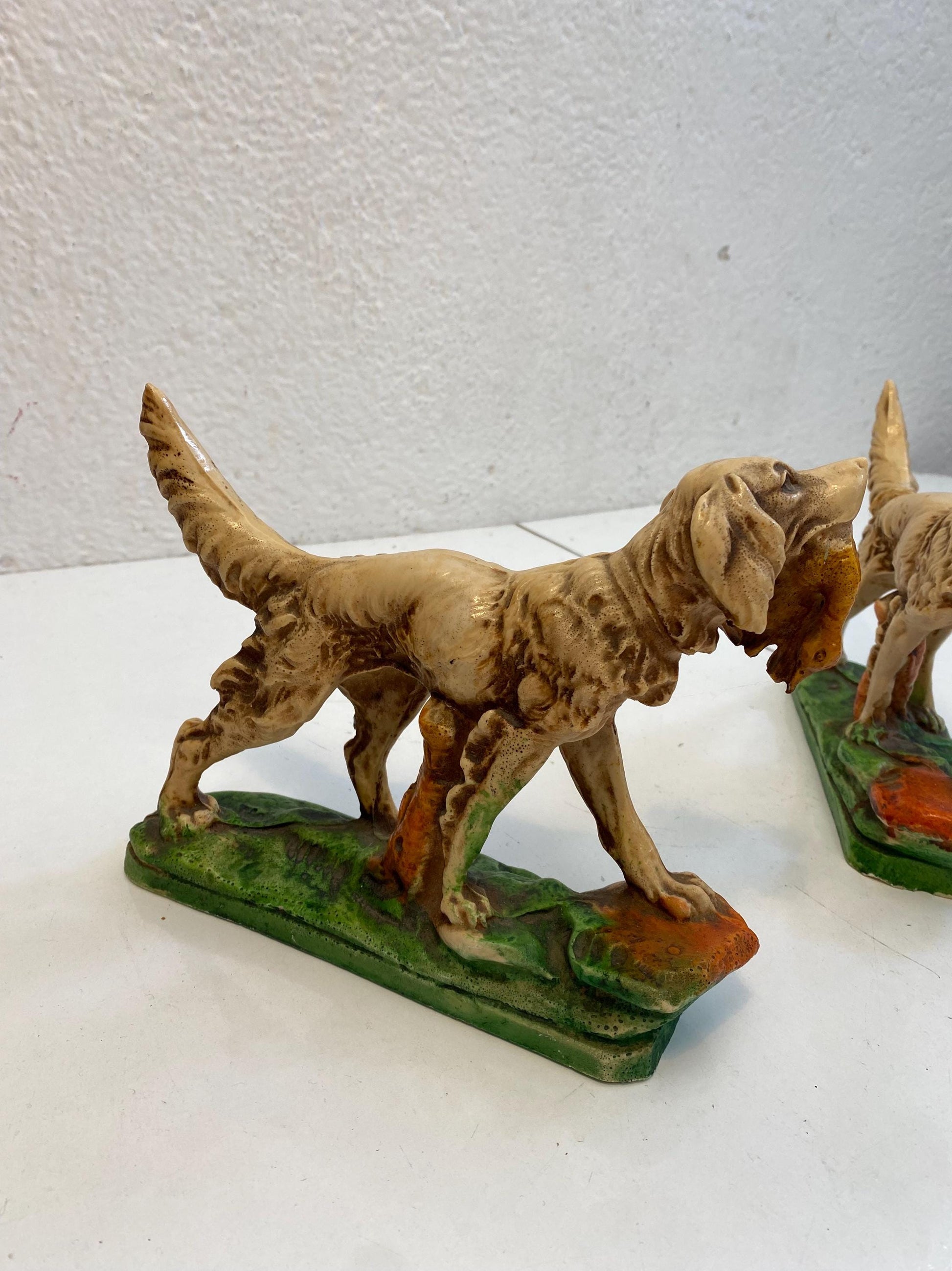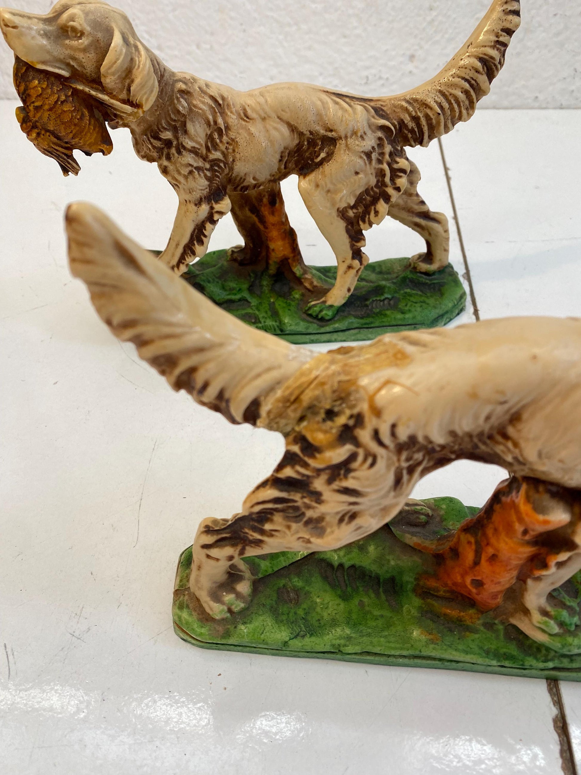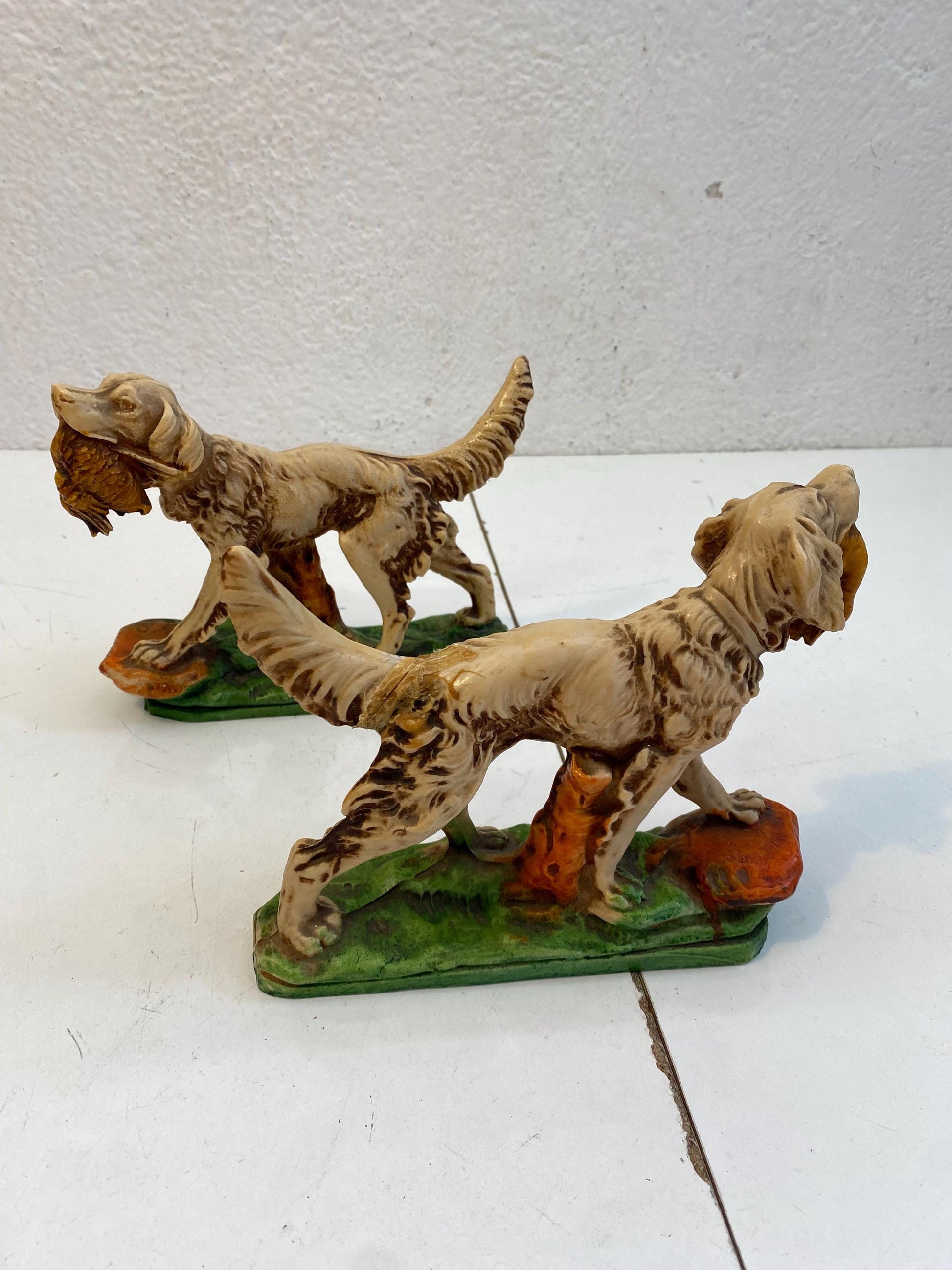 Coppia di Statuette figure Vintage Setter Inglese in Resina Dipinta a Mano 17x21x6 cm