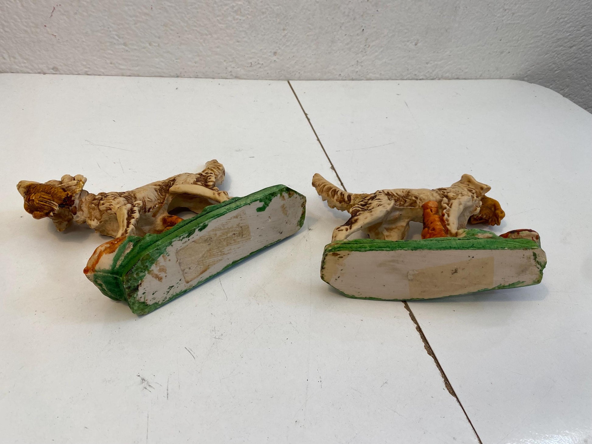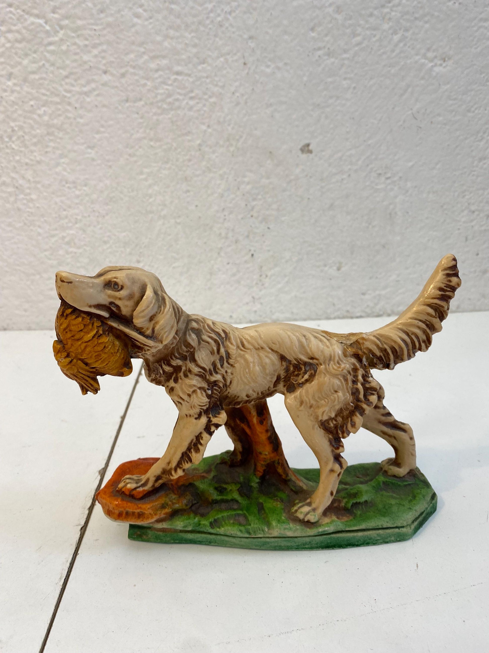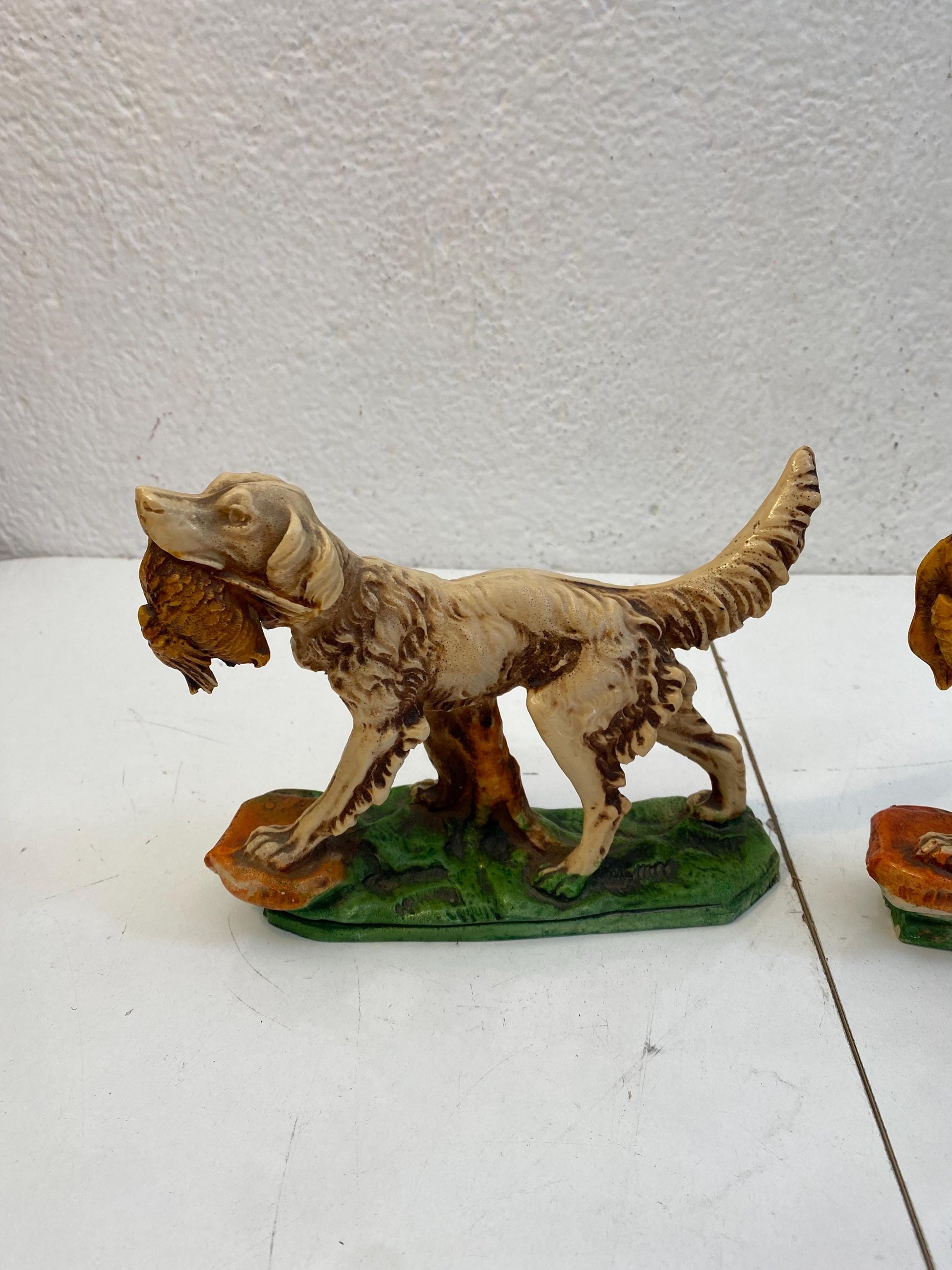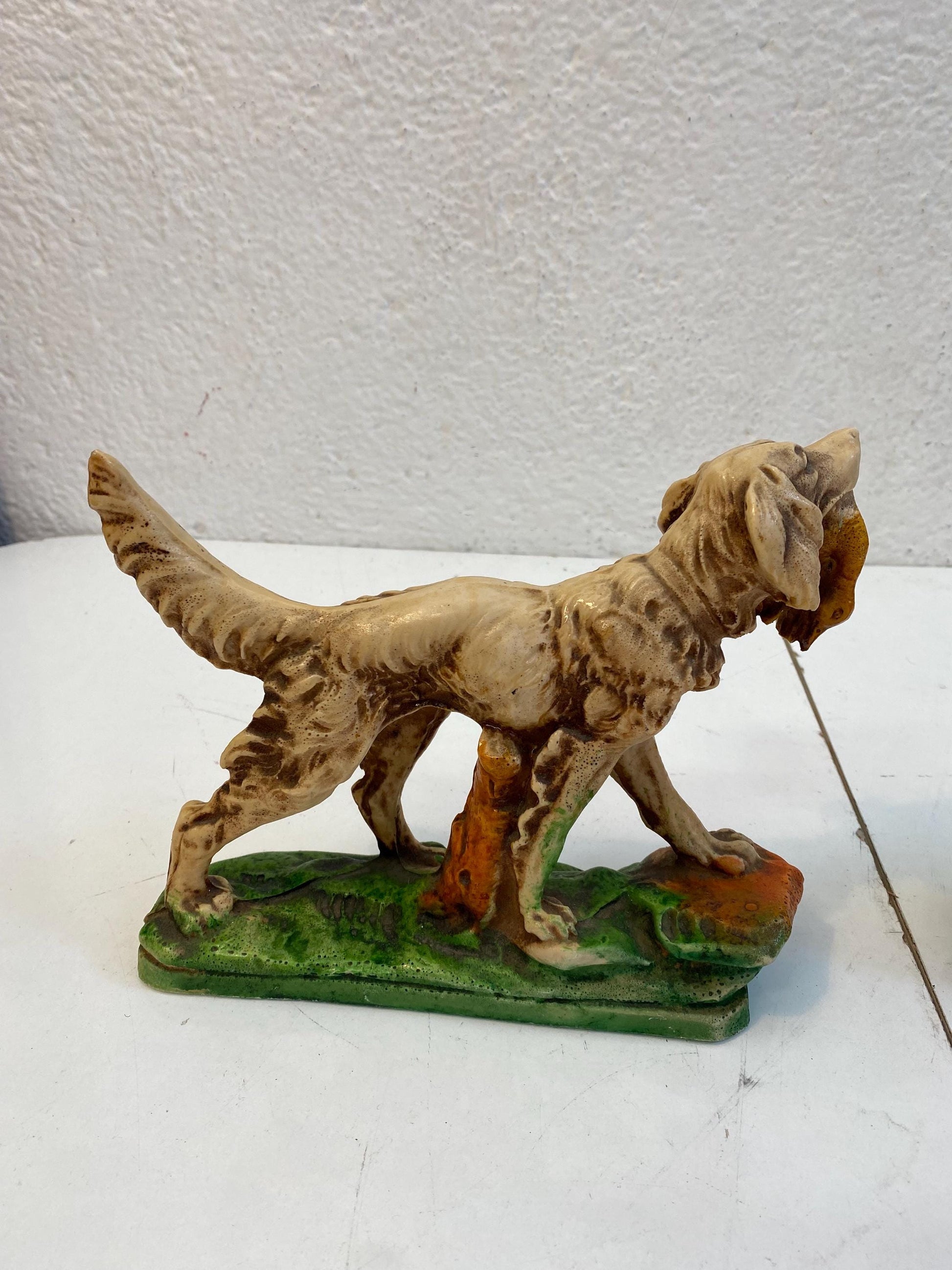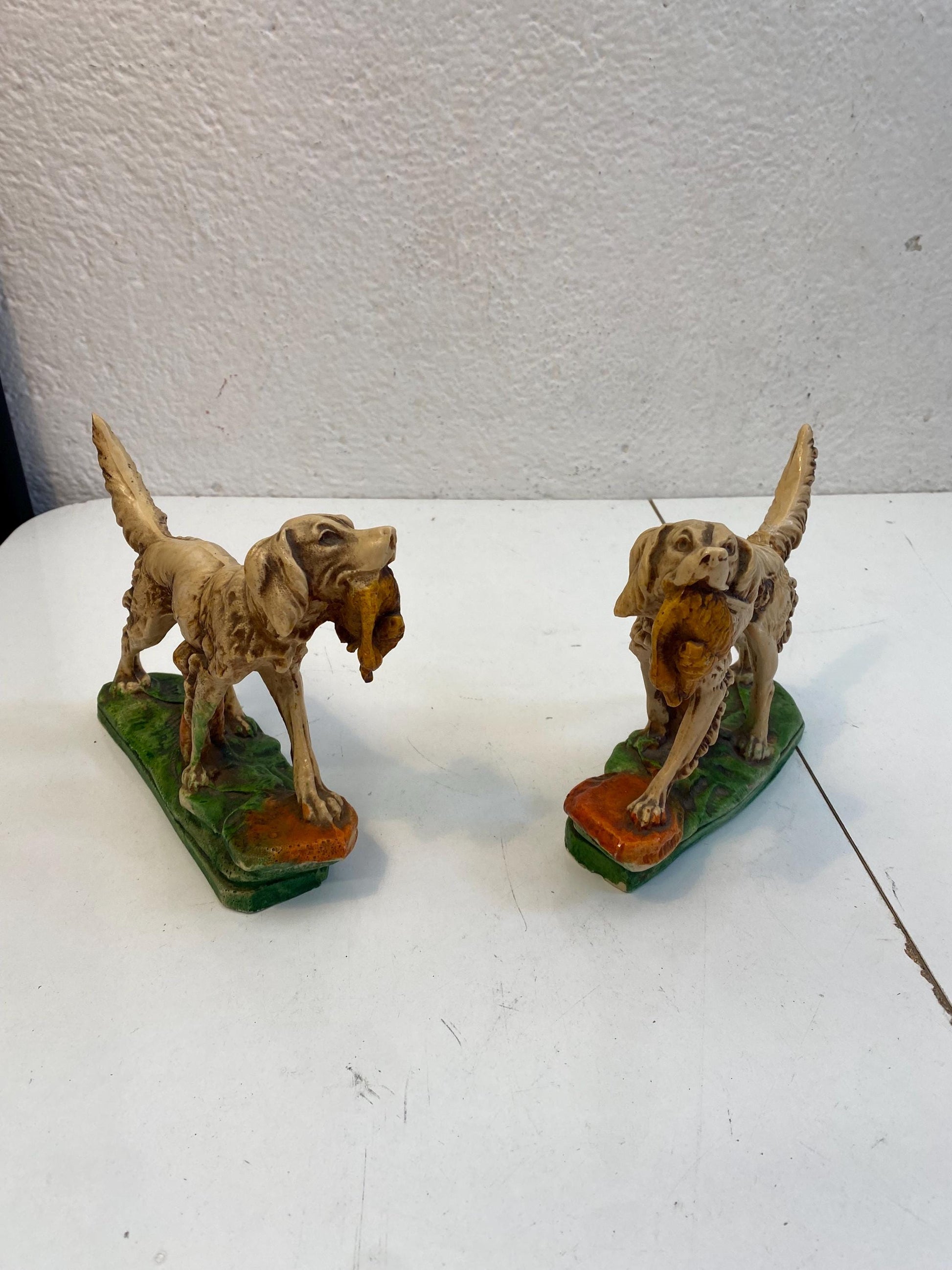 Coppia di Statuette figure Vintage Setter Inglese in Resina Dipinta a Mano 17x21x6 cm