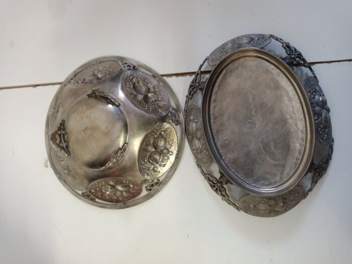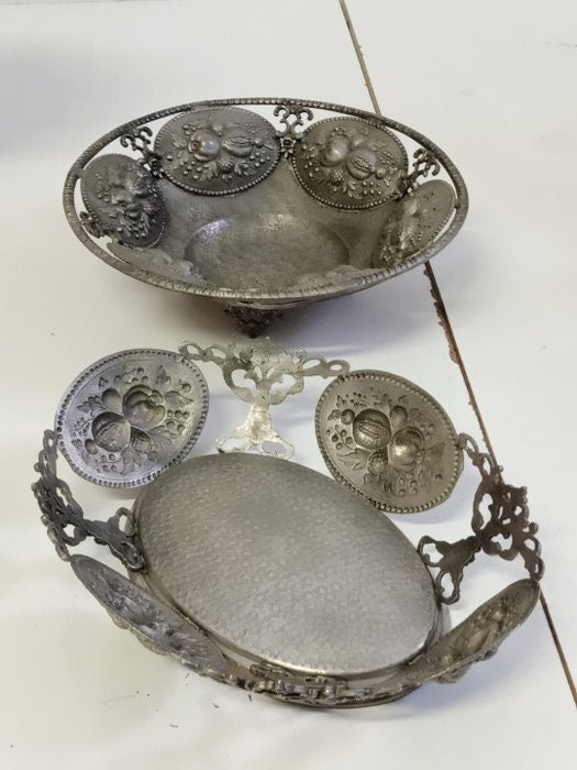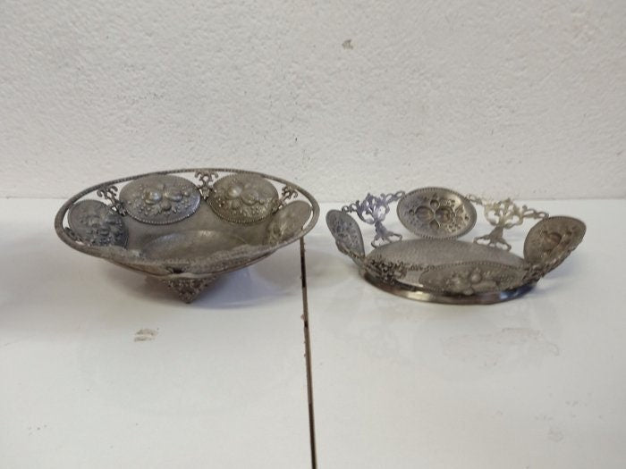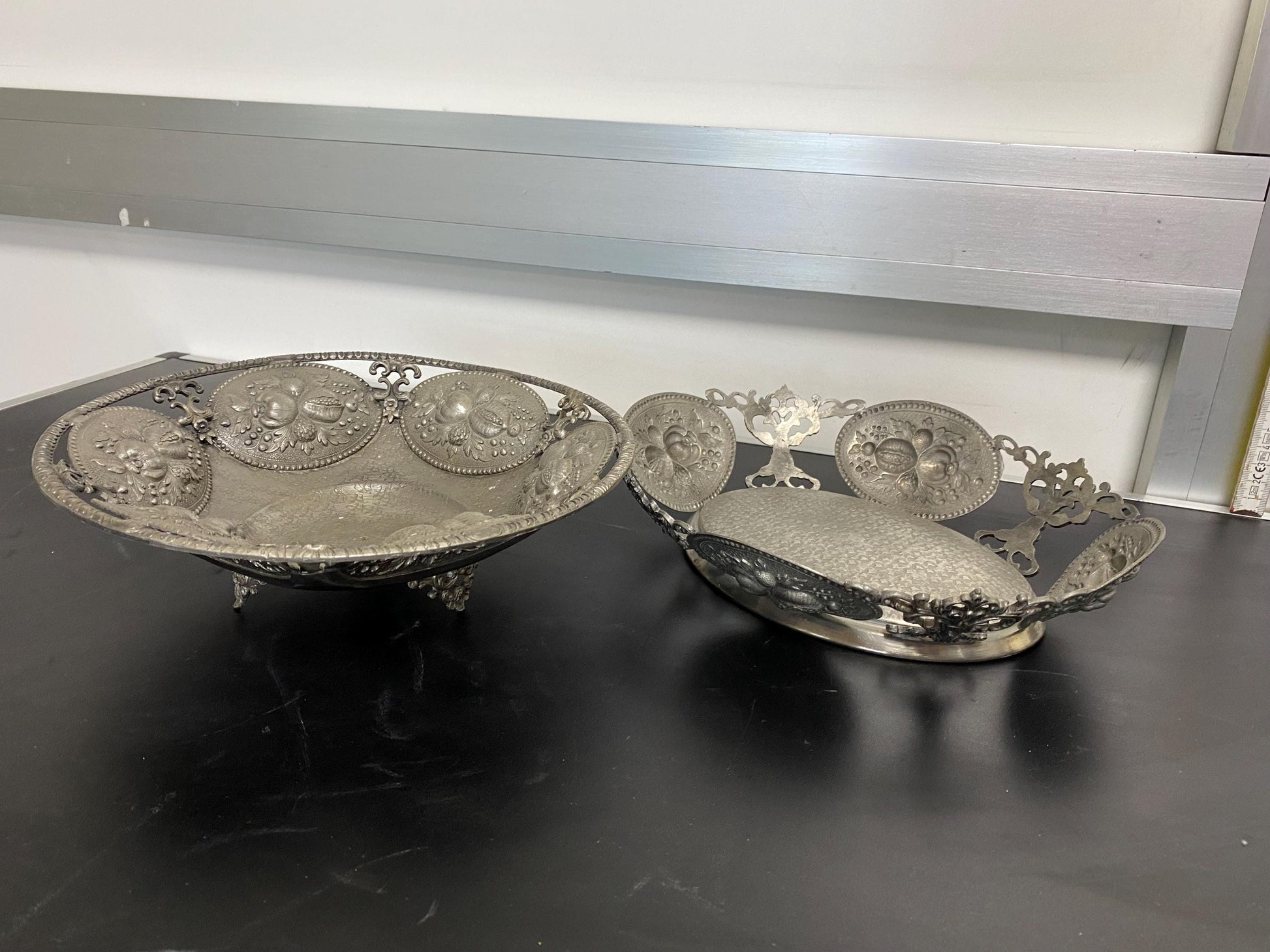 Due Cesti Lavorati a Mano in Peltro: Eleganza e Artigianalità per la Tua Casa
