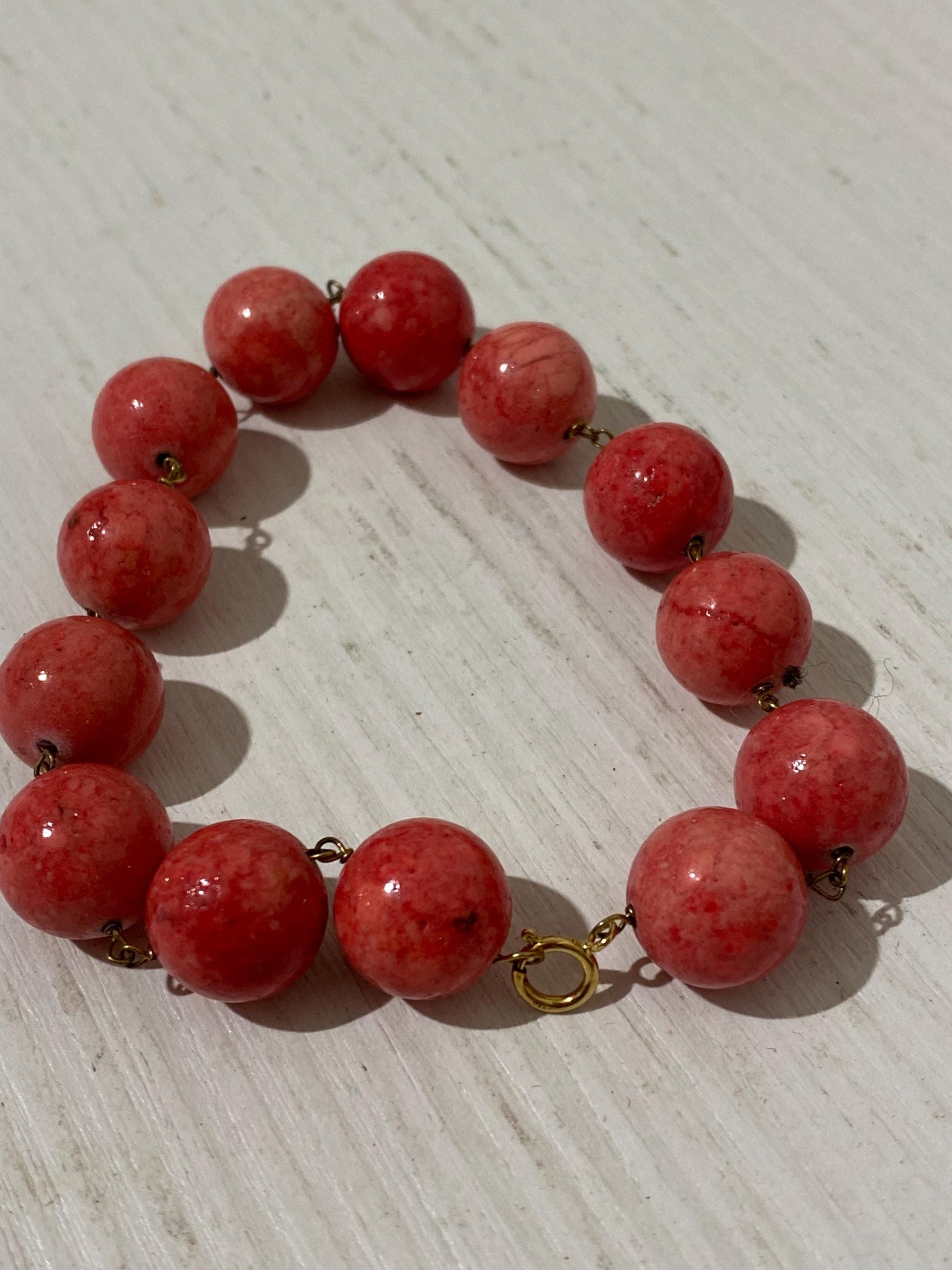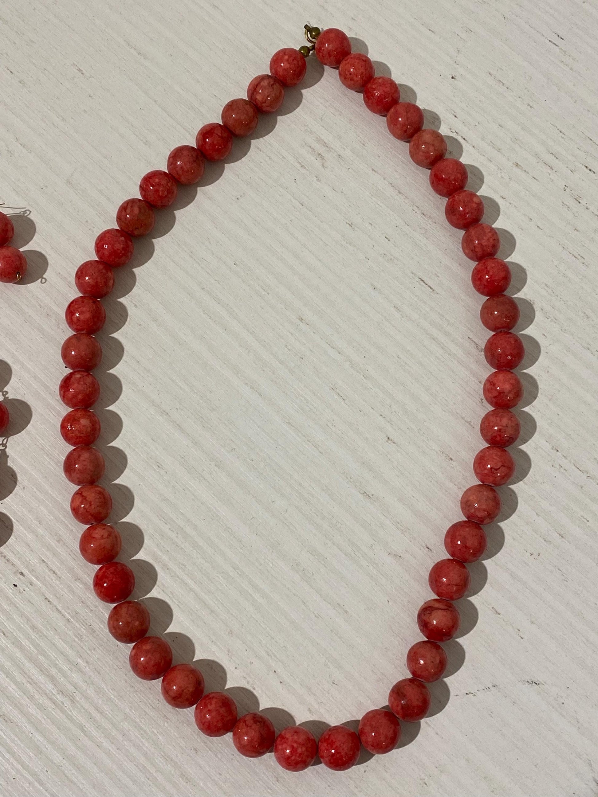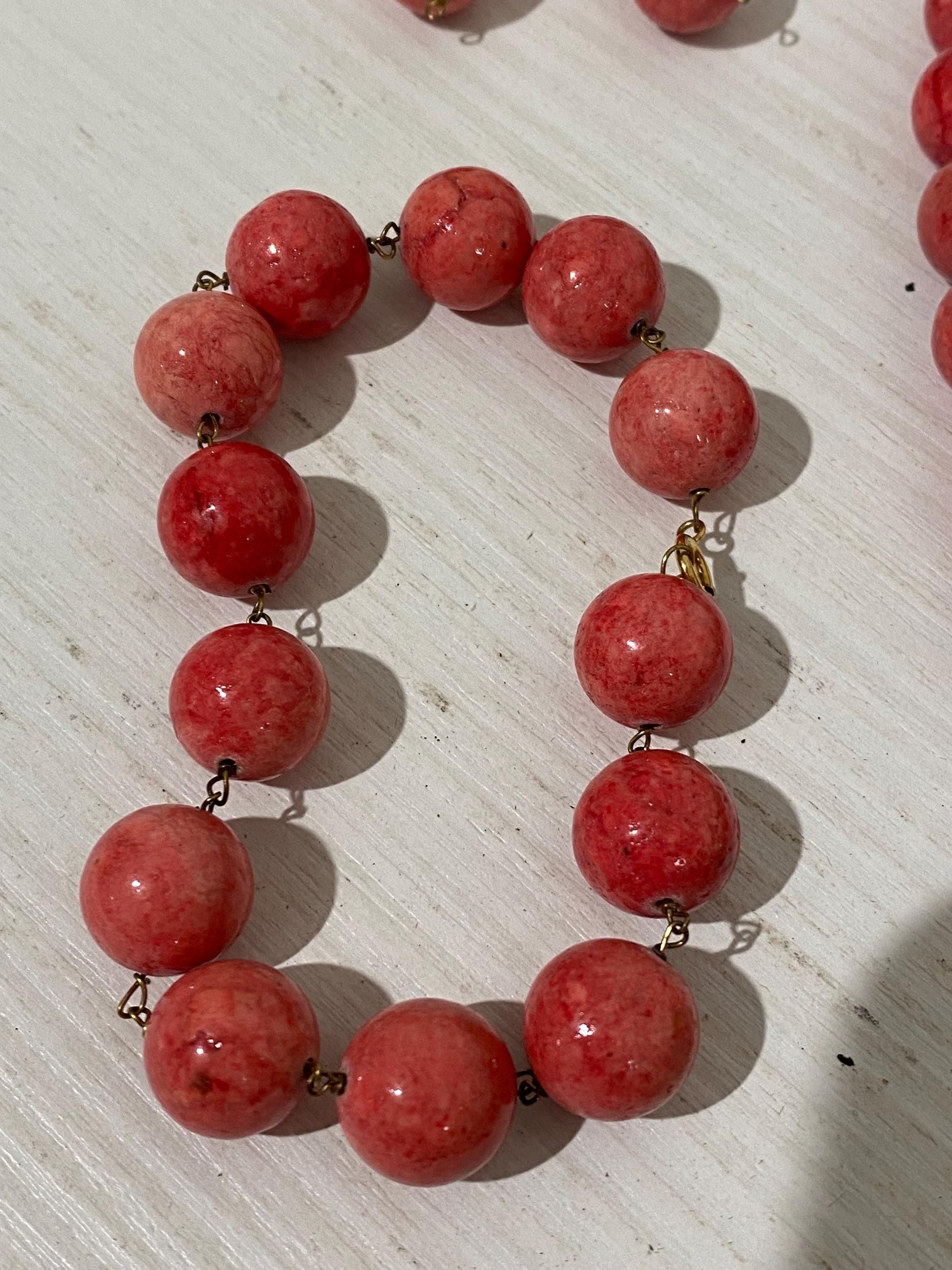 Un’affascinante parure vintage composta da collana, bracciale e orecchini, impreziositi da splendide perline sfaccettate di un vivace colore rosso. Un accessorio unico che aggiunge un tocco di classe al tuo look.