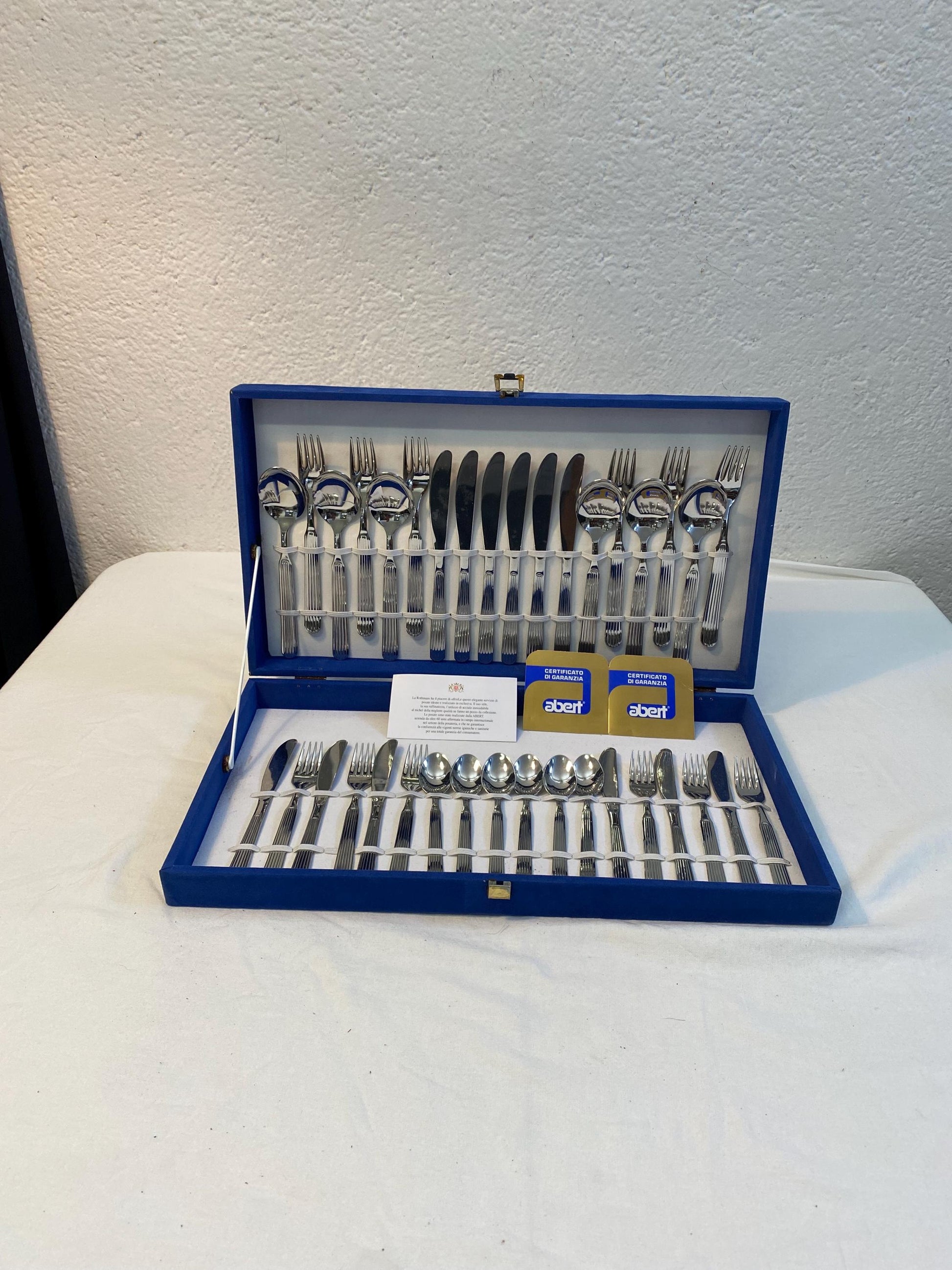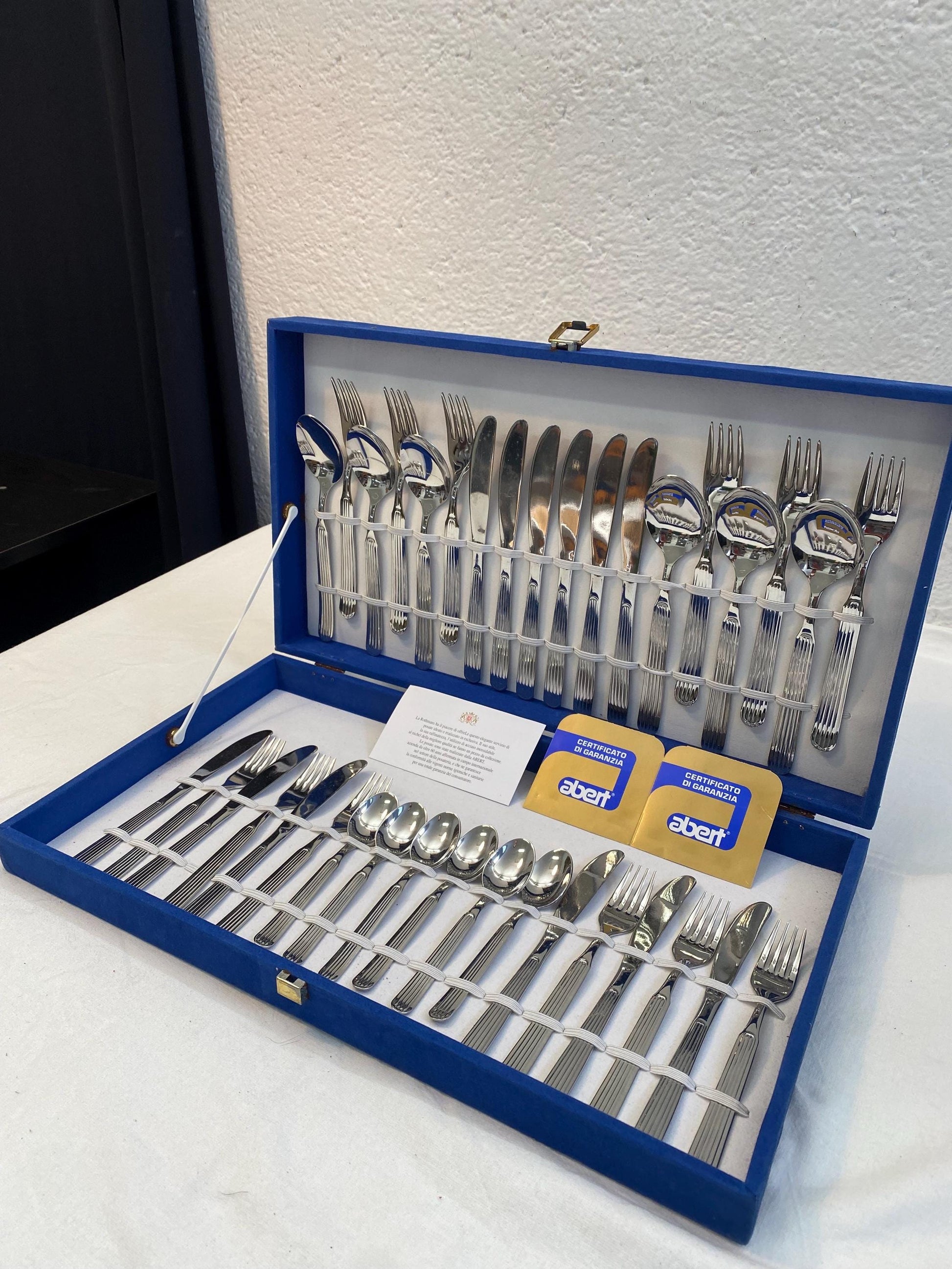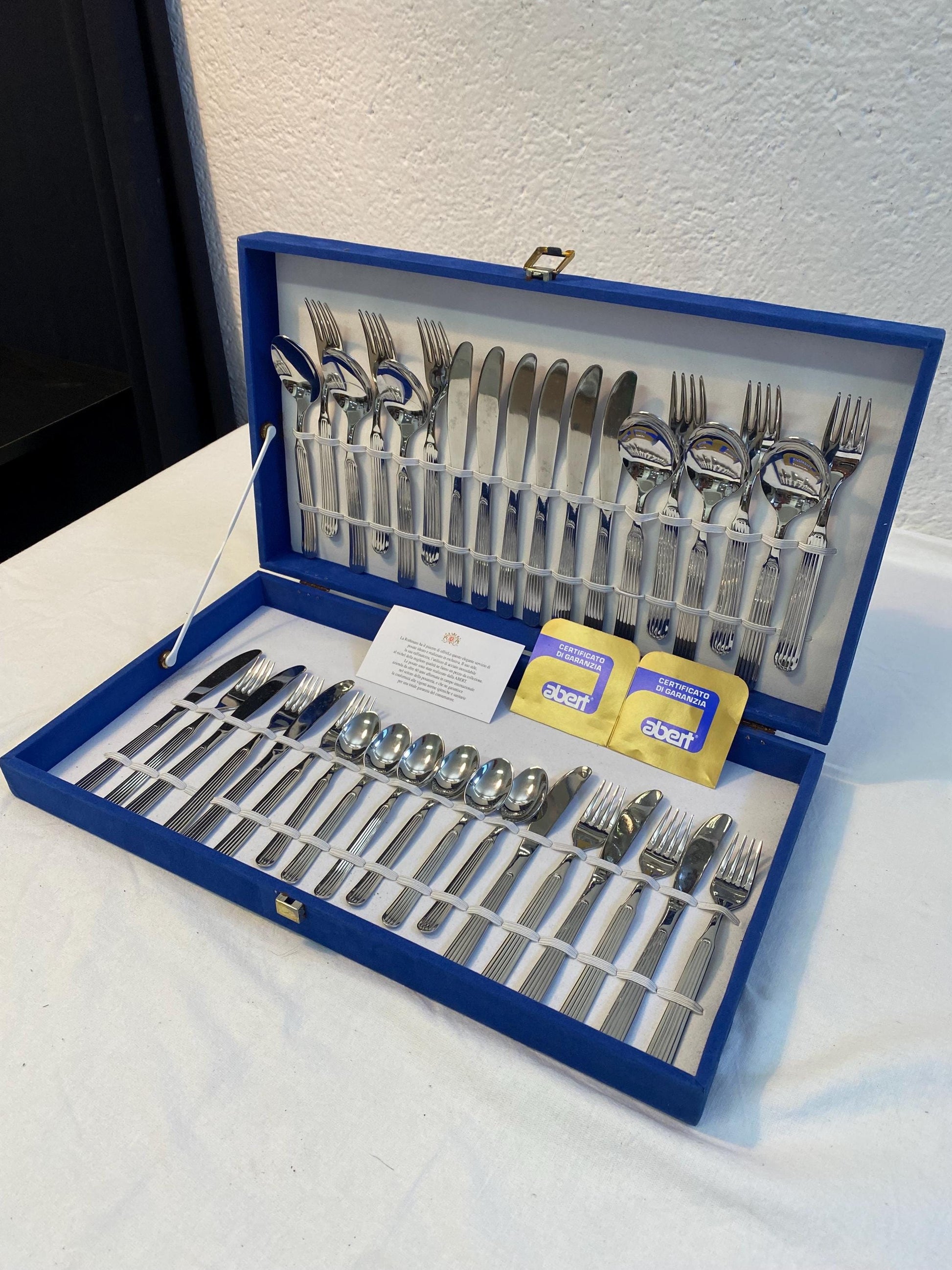 Elegante Set di Posate in Acciaio Inox ABERT con Marchio Rothmans - vintage servizio da 6+6 Nuovo e Completo con Certificato di Garanzia
