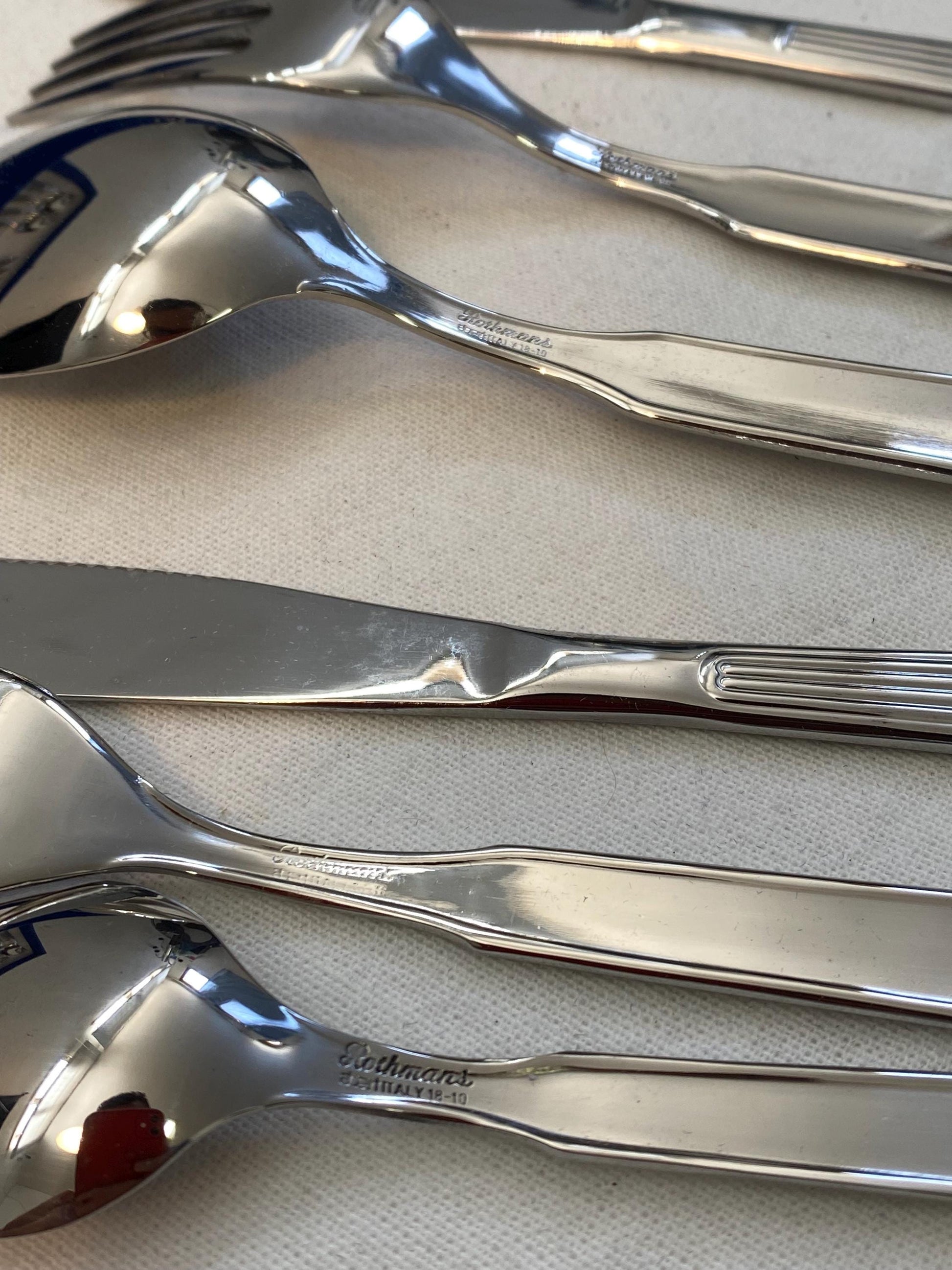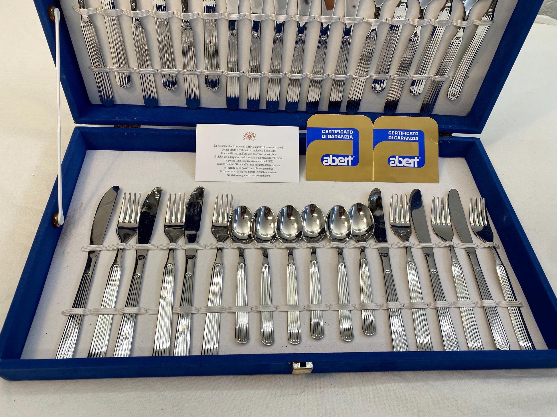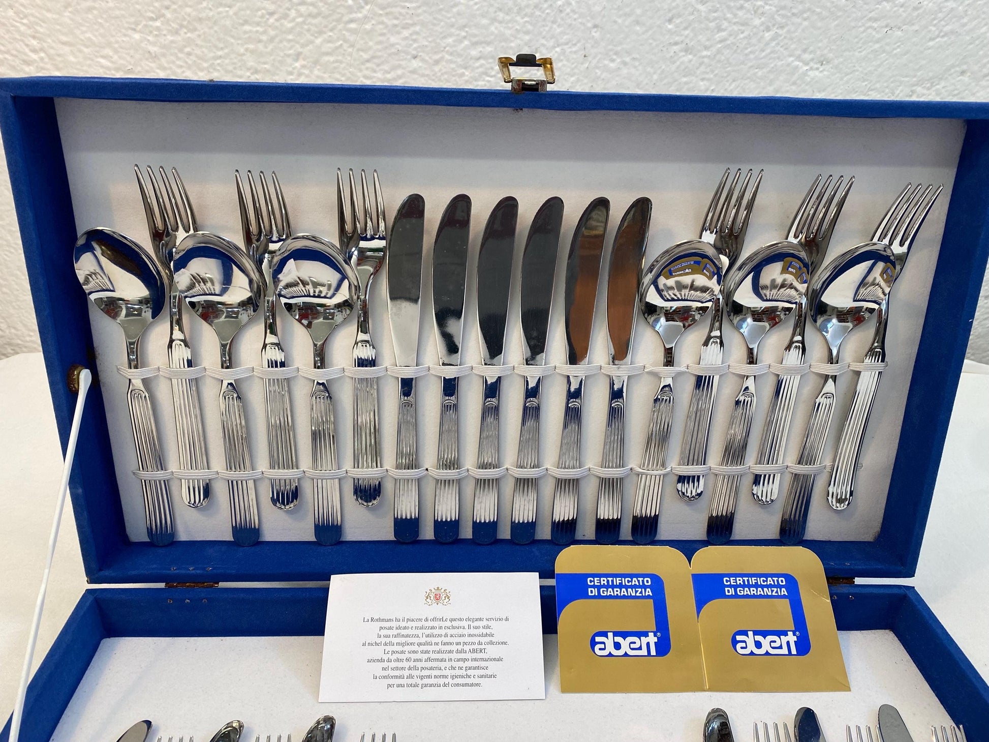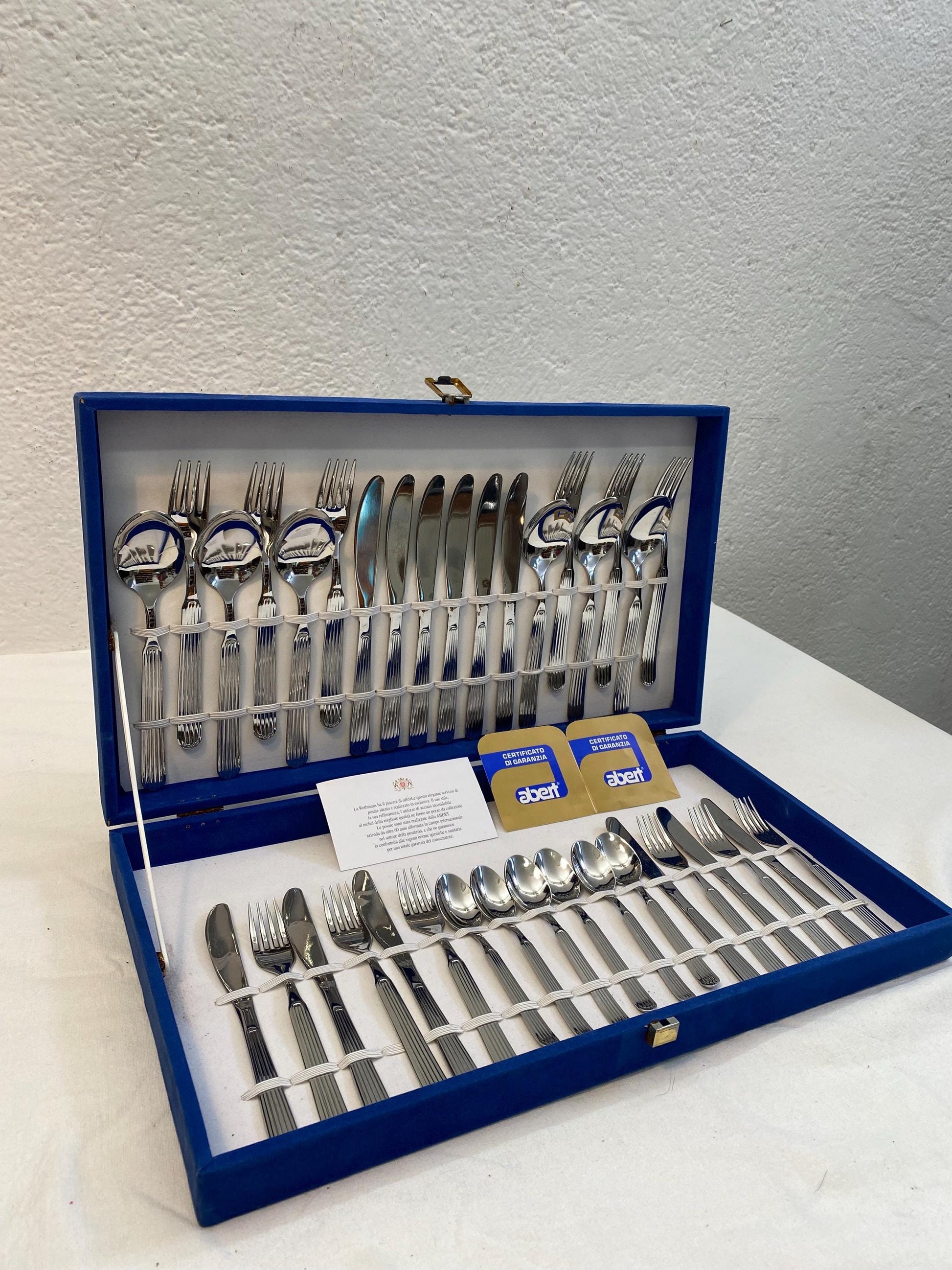Elegante Set di Posate in Acciaio Inox ABERT con Marchio Rothmans - vintage servizio da 6+6 Nuovo e Completo con Certificato di Garanzia