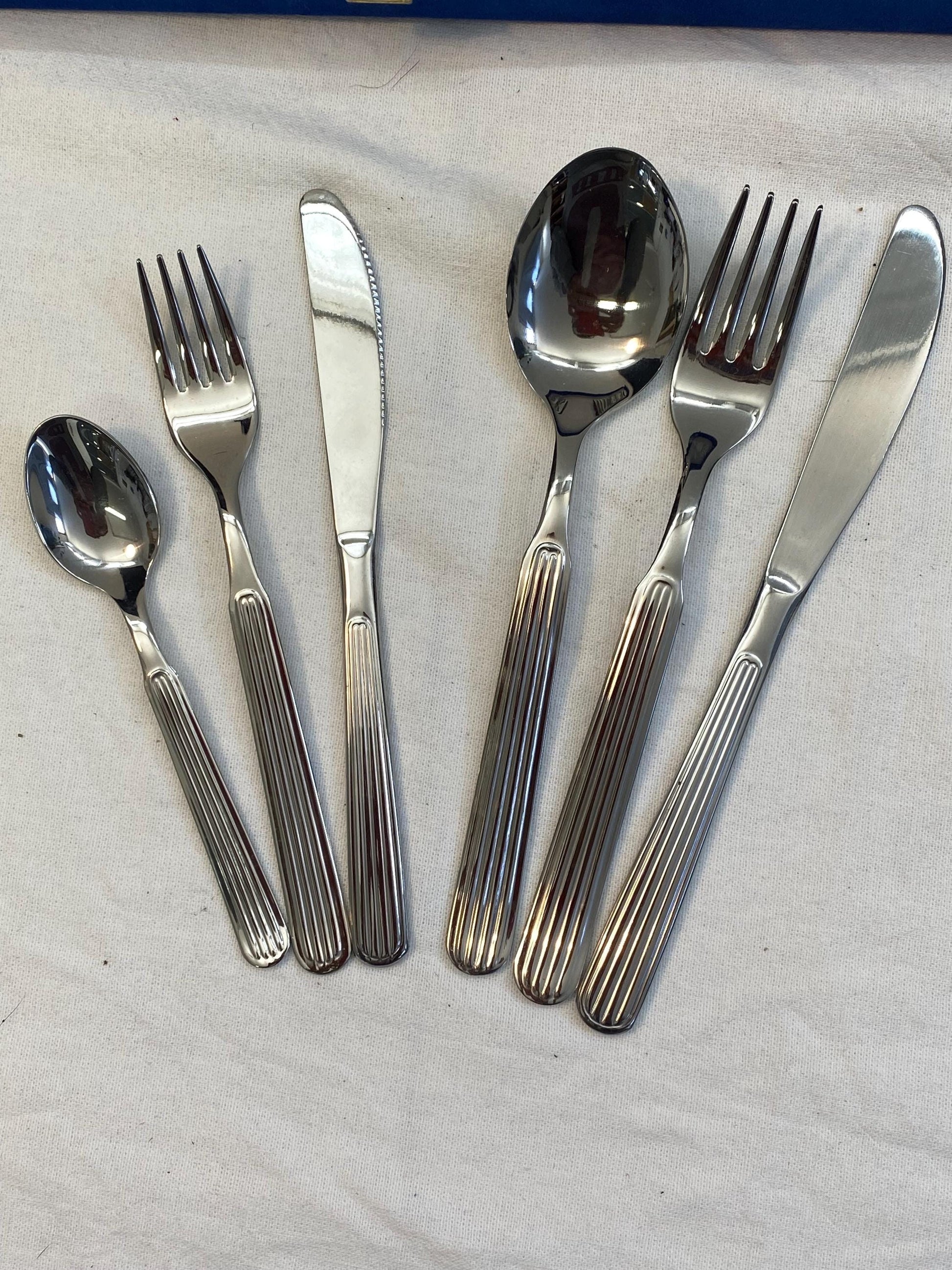 Incluso: Forchette, coltelli, cucchiai e cucchiaini (set principale per 6 persone) + Servizio per dolce (forchette e coltello dolce per 6 persone)