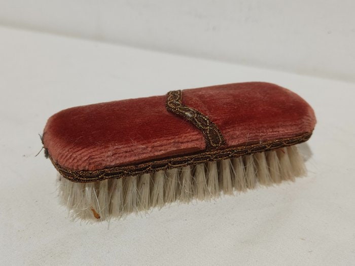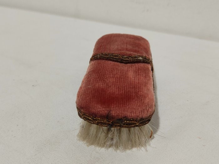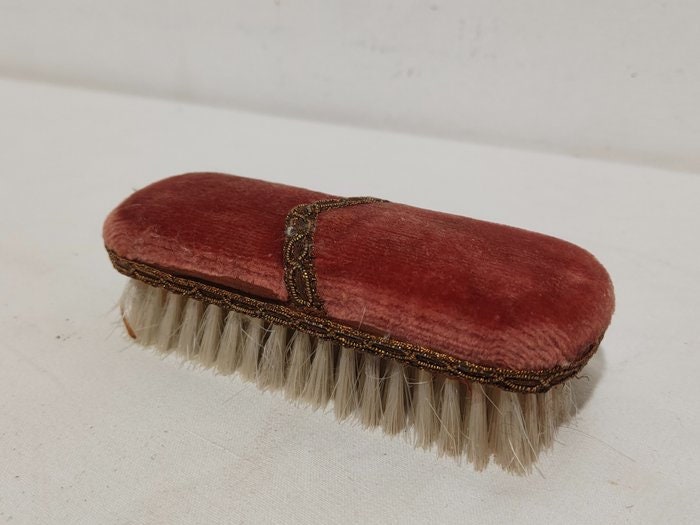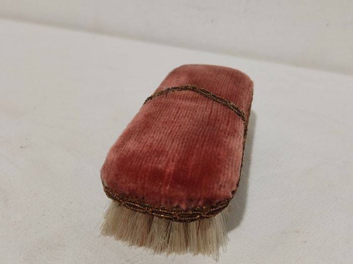elegante spazzola vintage con manico in velluto bordò 12x5x3,50 cm