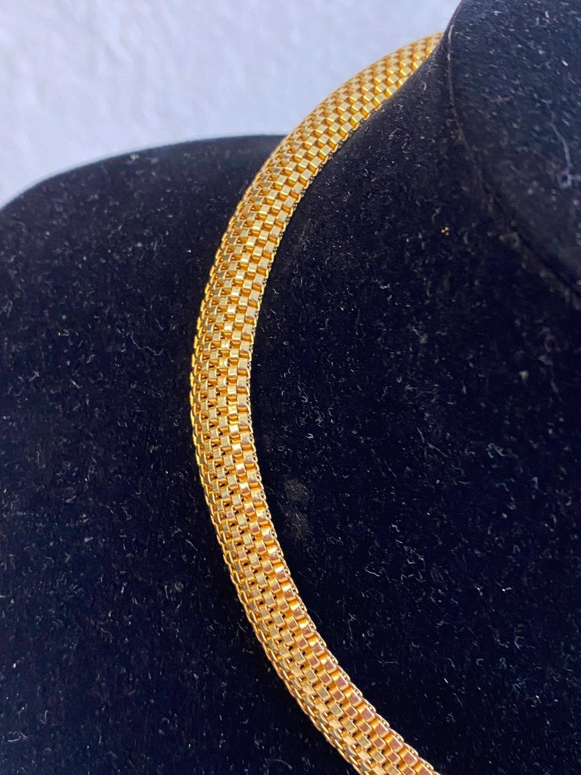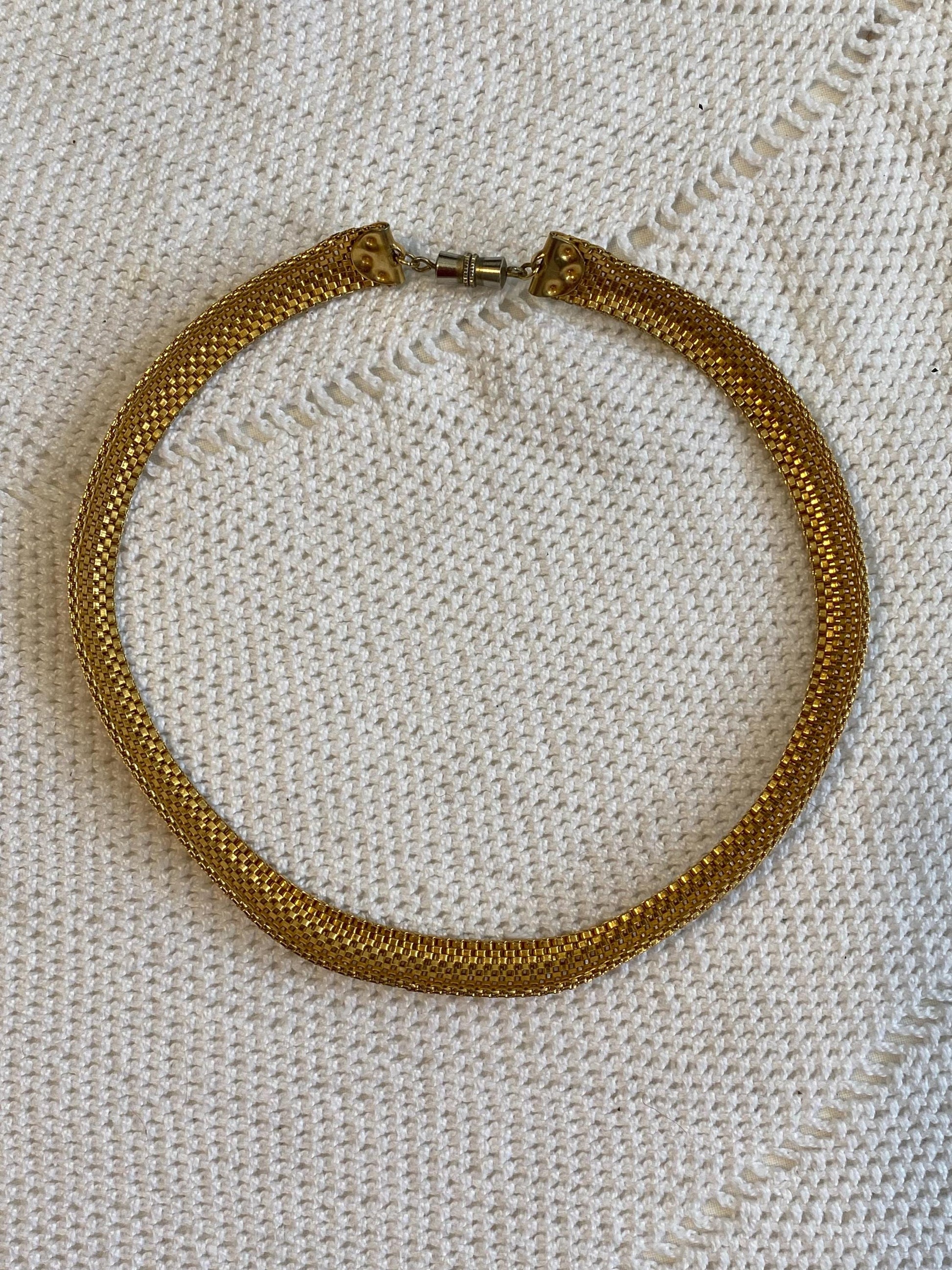 Girocollo vintage anni 80 in maglia dorata 15" Choker mesh oro lucido con chiusura a vite. Pezzo raro retrò pronto a illuminare i tuoi look