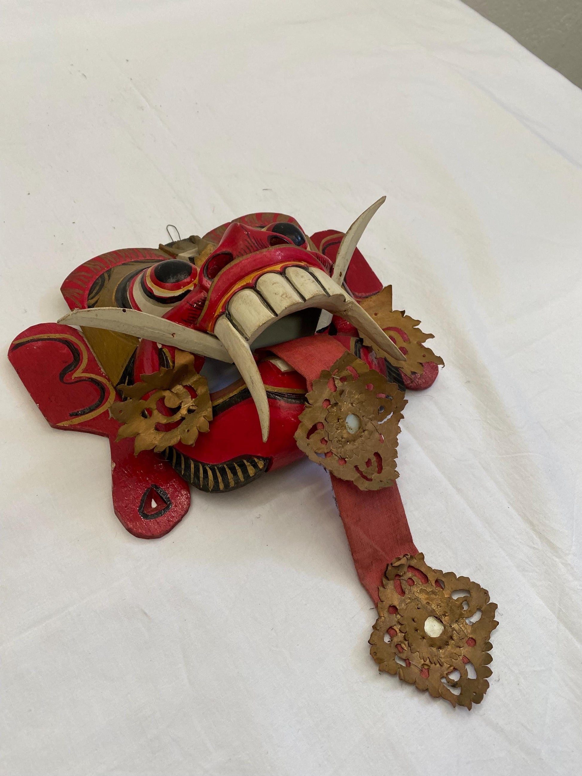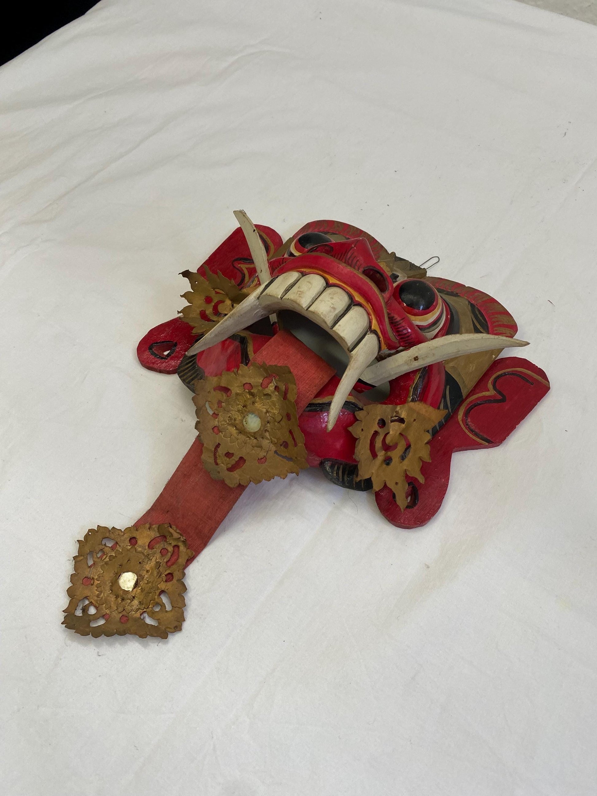 Maschera da Demone Tribale Balinese - Maschera da Diavolo Dipinta a Mano - Rangda Strega Malvagia