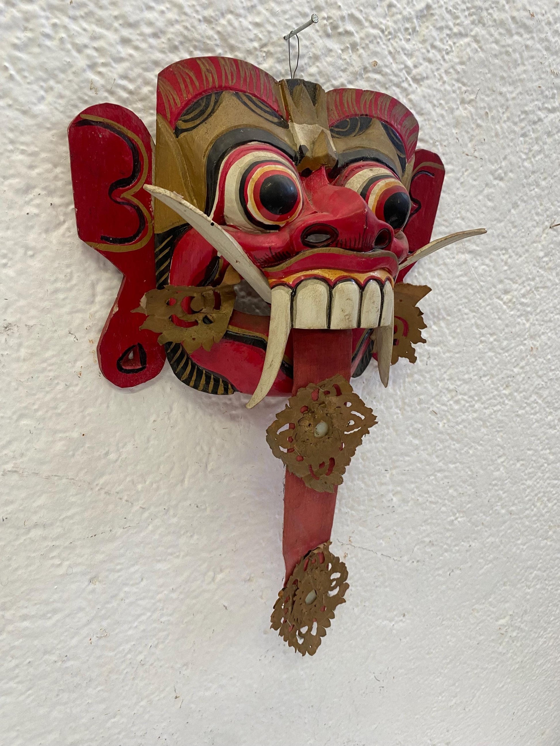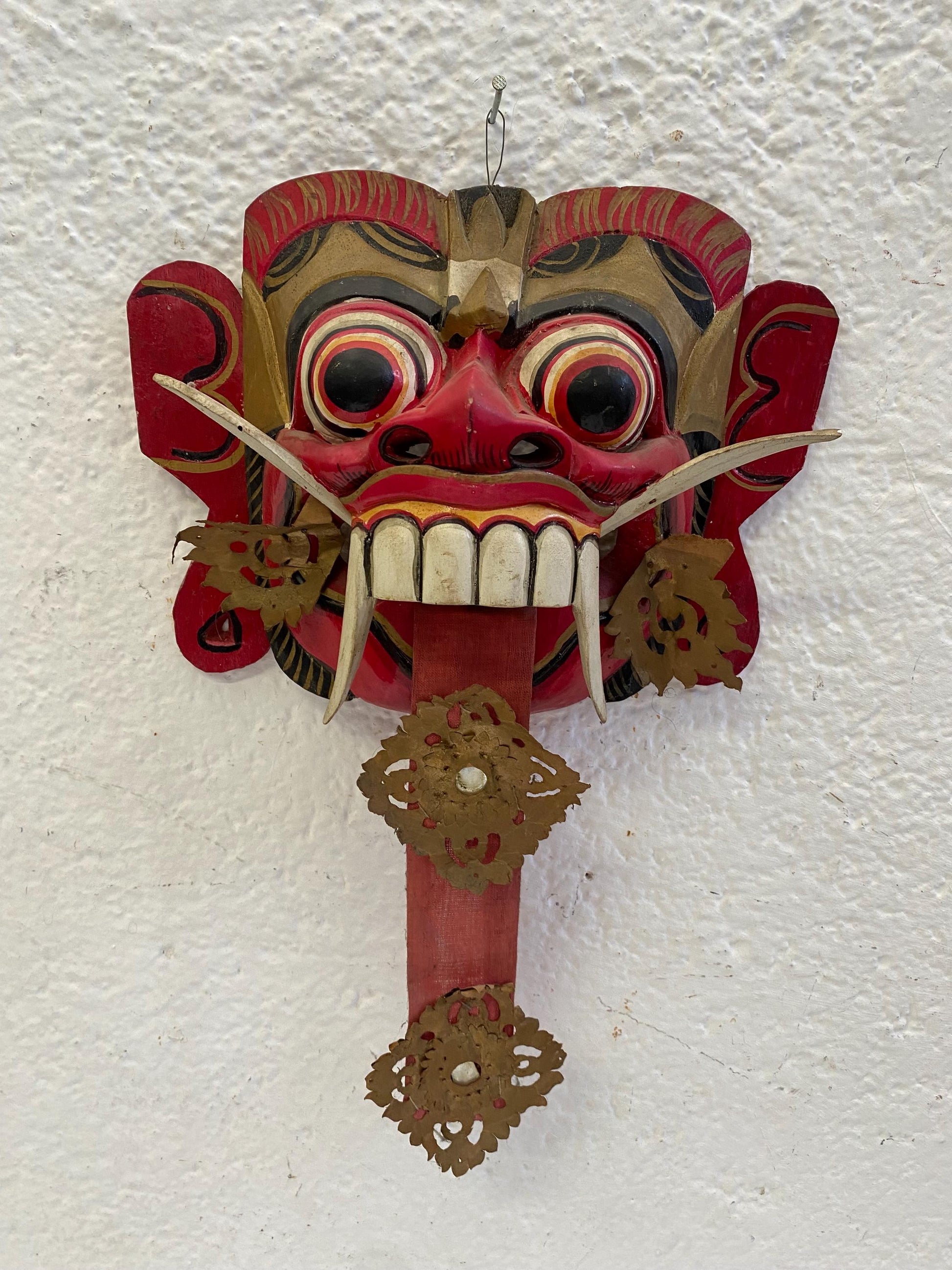 Questa affascinante maschera rappresenta Rangda, una figura mitica del teatro balinese nota per essere una strega malvagia. Dipinta a mano con colori vibranti e dettagli spaventosi, questa maschera è un‘opera d‘arte unica che attirerà l‘attenzione di chiunque la veda.