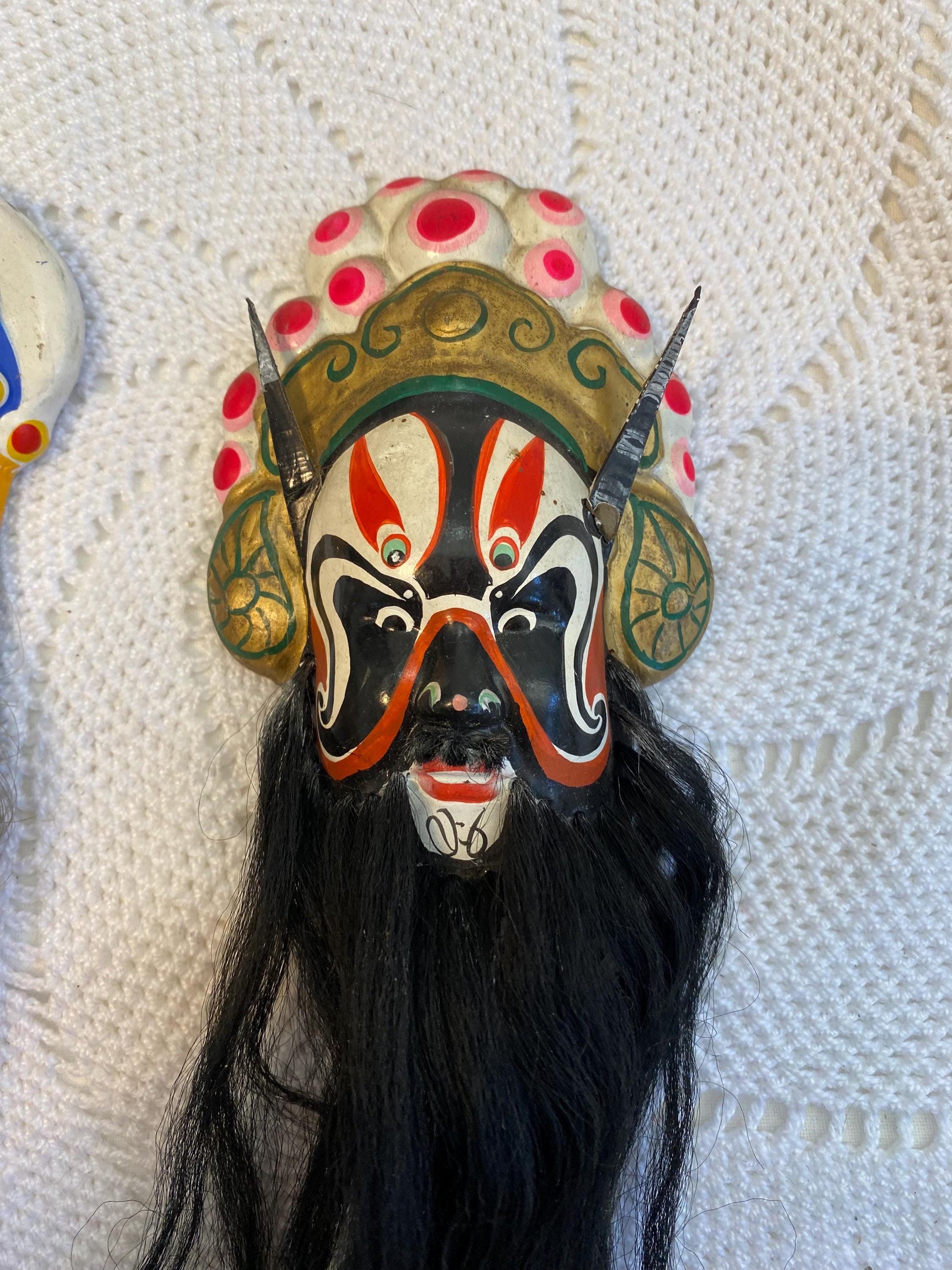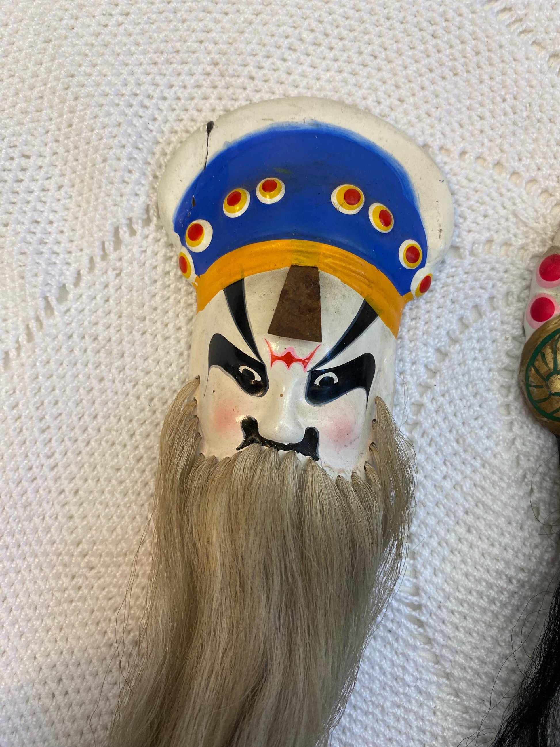 Maschera Jingju in Terracotta Dipinta a Mano con Barba Lunga - Arte Cinese Autentica - Set di 2 Maschere