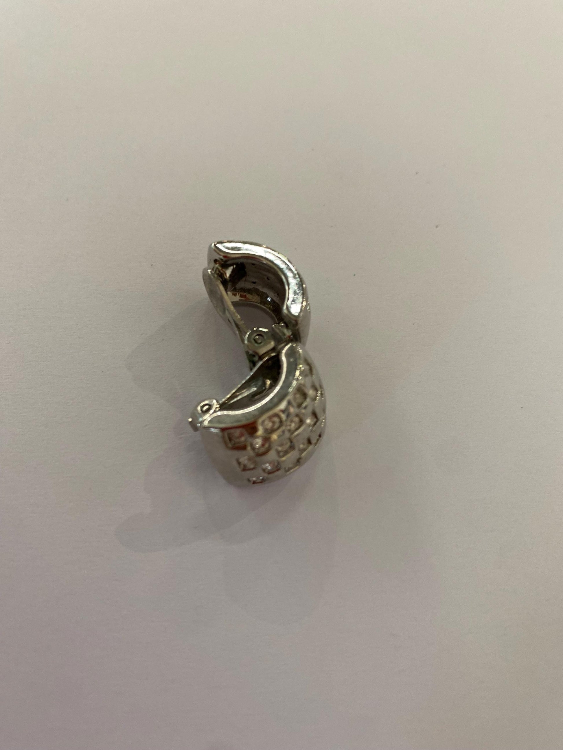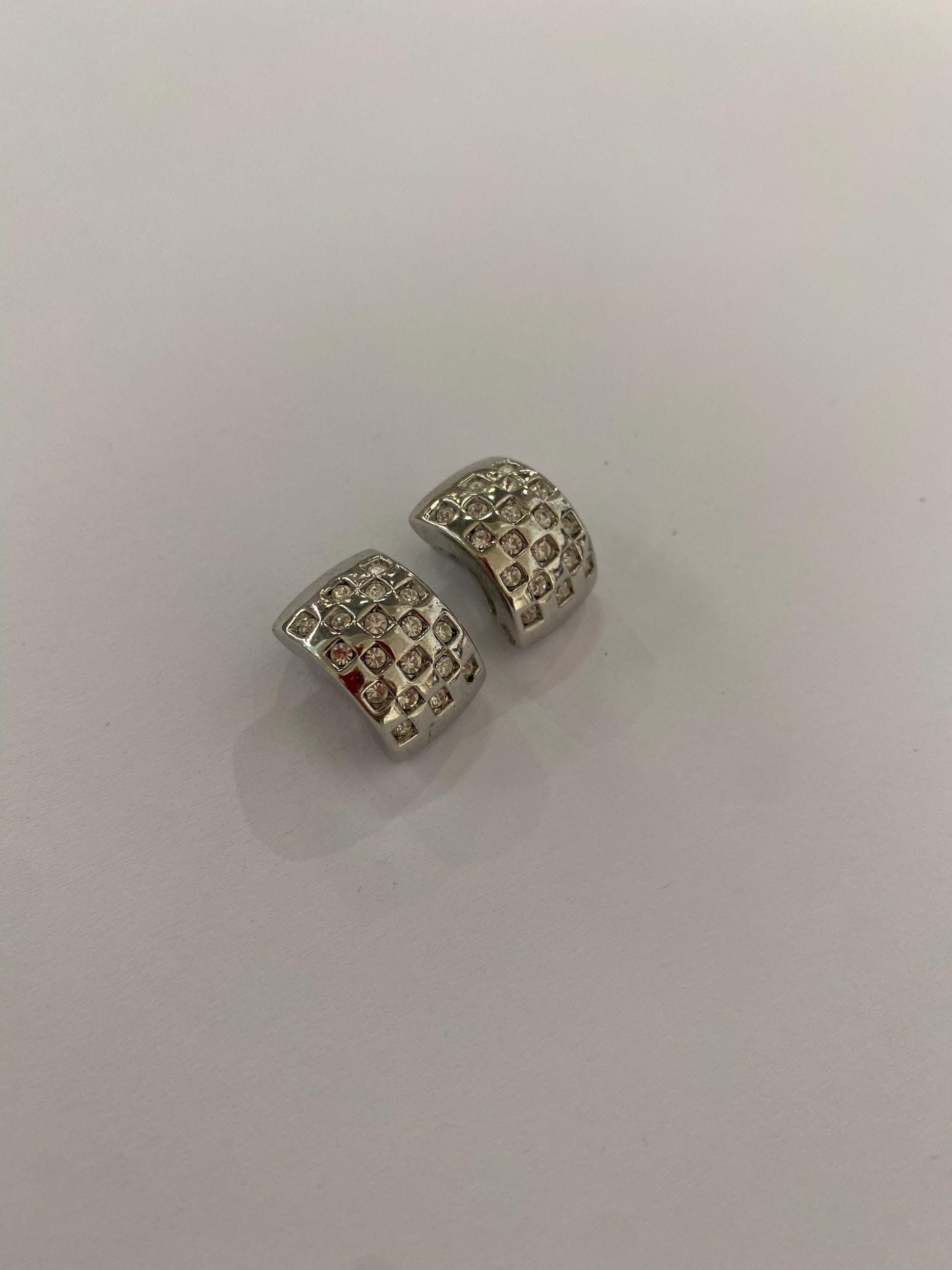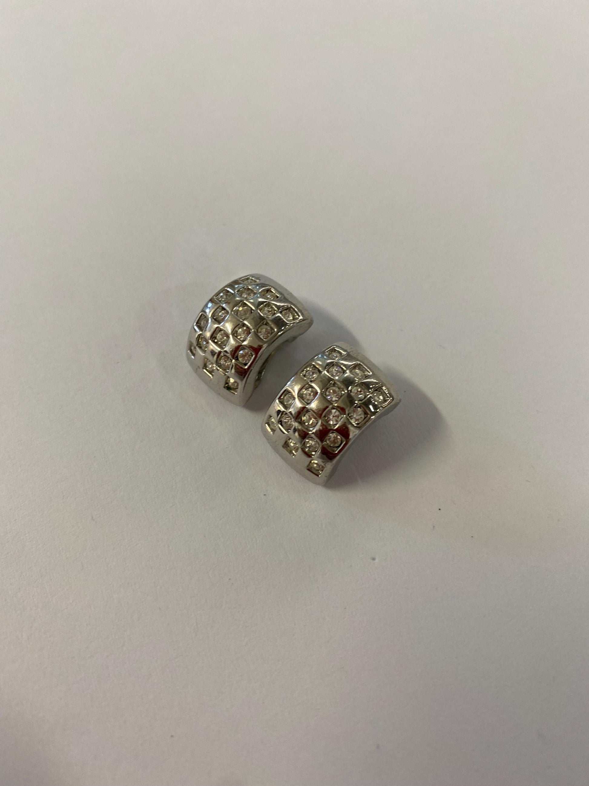 Orecchini a clip metallo argentato con strass pavé | Vintage eleganti anni '90 1,5x1 cm | Bijoux luminosi da sera
