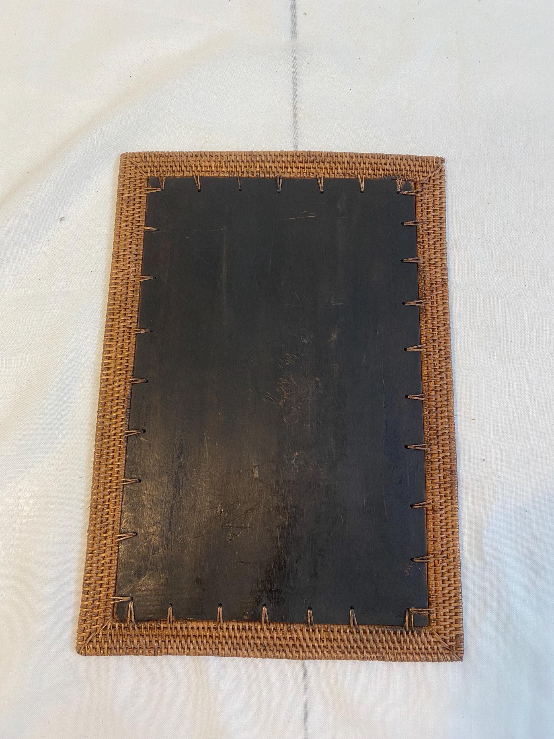 Il bordo è finemente lavorato in rattan intrecciato, cucito a mano, che dona al pezzo un aspetto naturale e armonioso. L’intero pannello misura 34 x 23 x 0,4 cm (13,4" x 9" x 0,15") ed è perfetto da appendere a parete in un soggiorno, uno studio, una camera da letto o uno spazio meditativo.