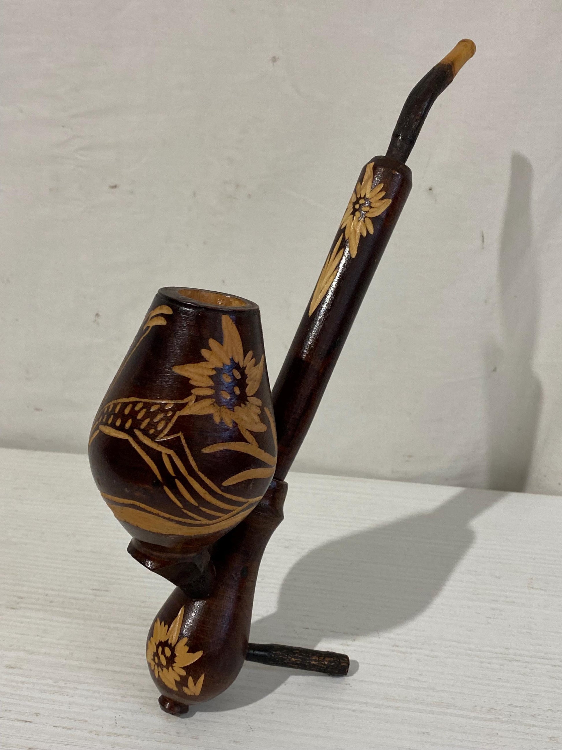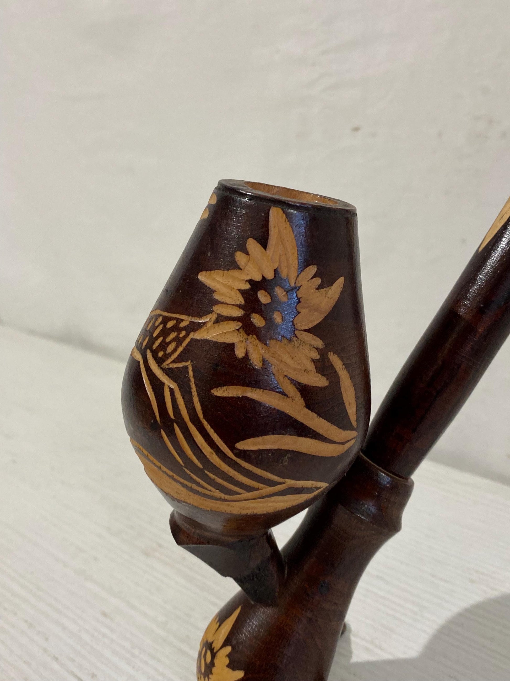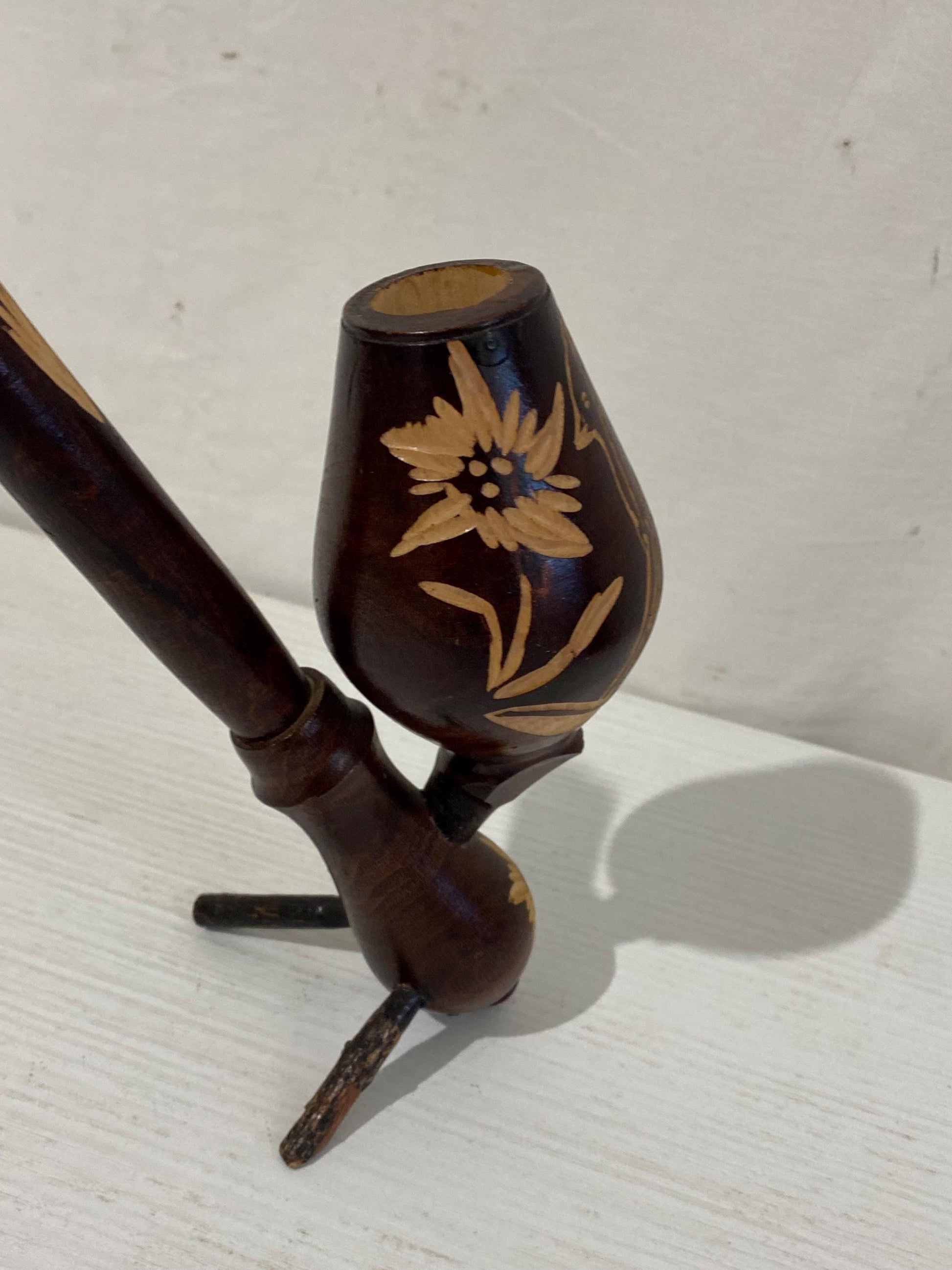 Pipa particolare Funzionante Vintage in Legno Intagliato con Motivo Floreale - 24x20x7 cm