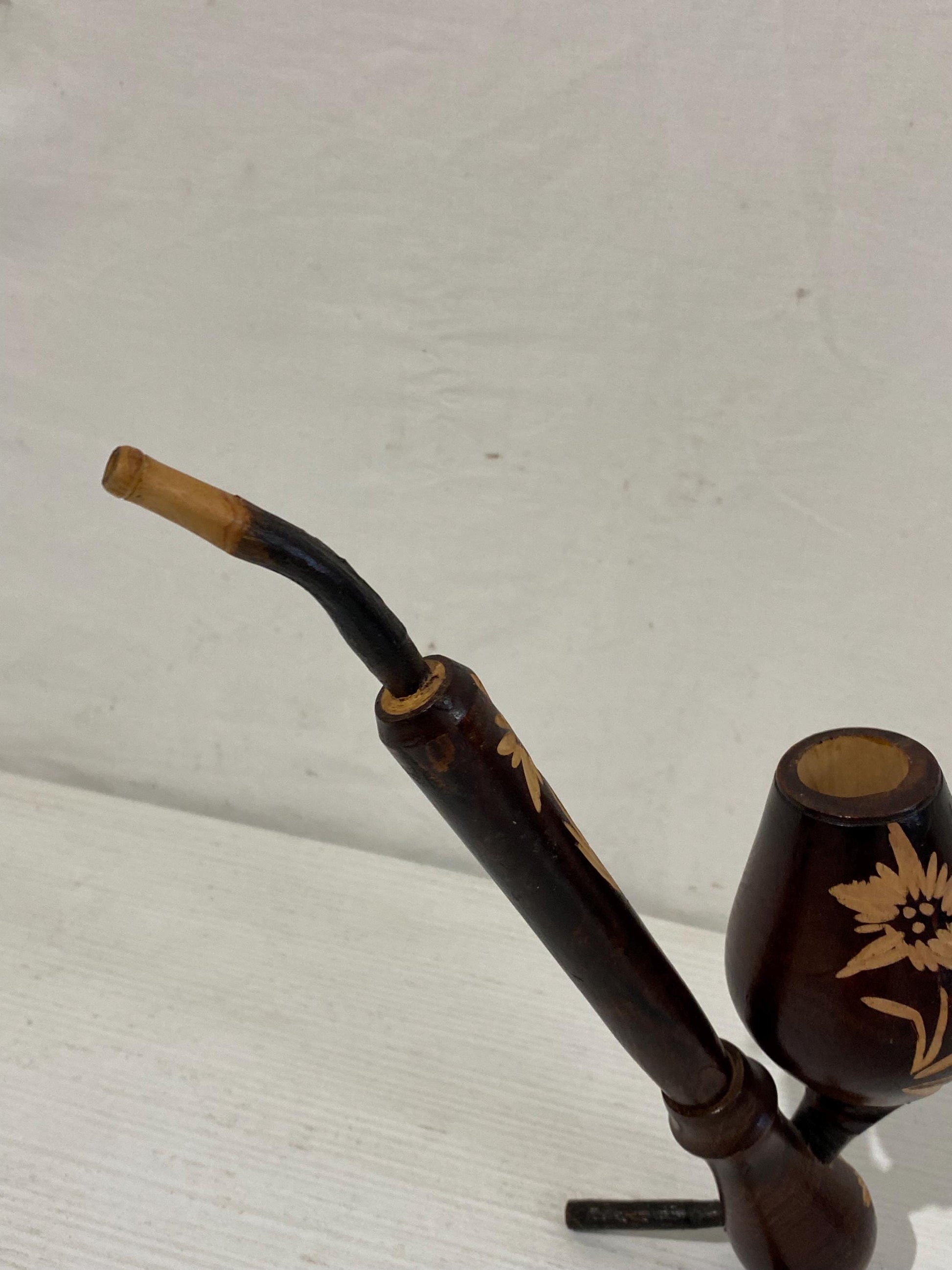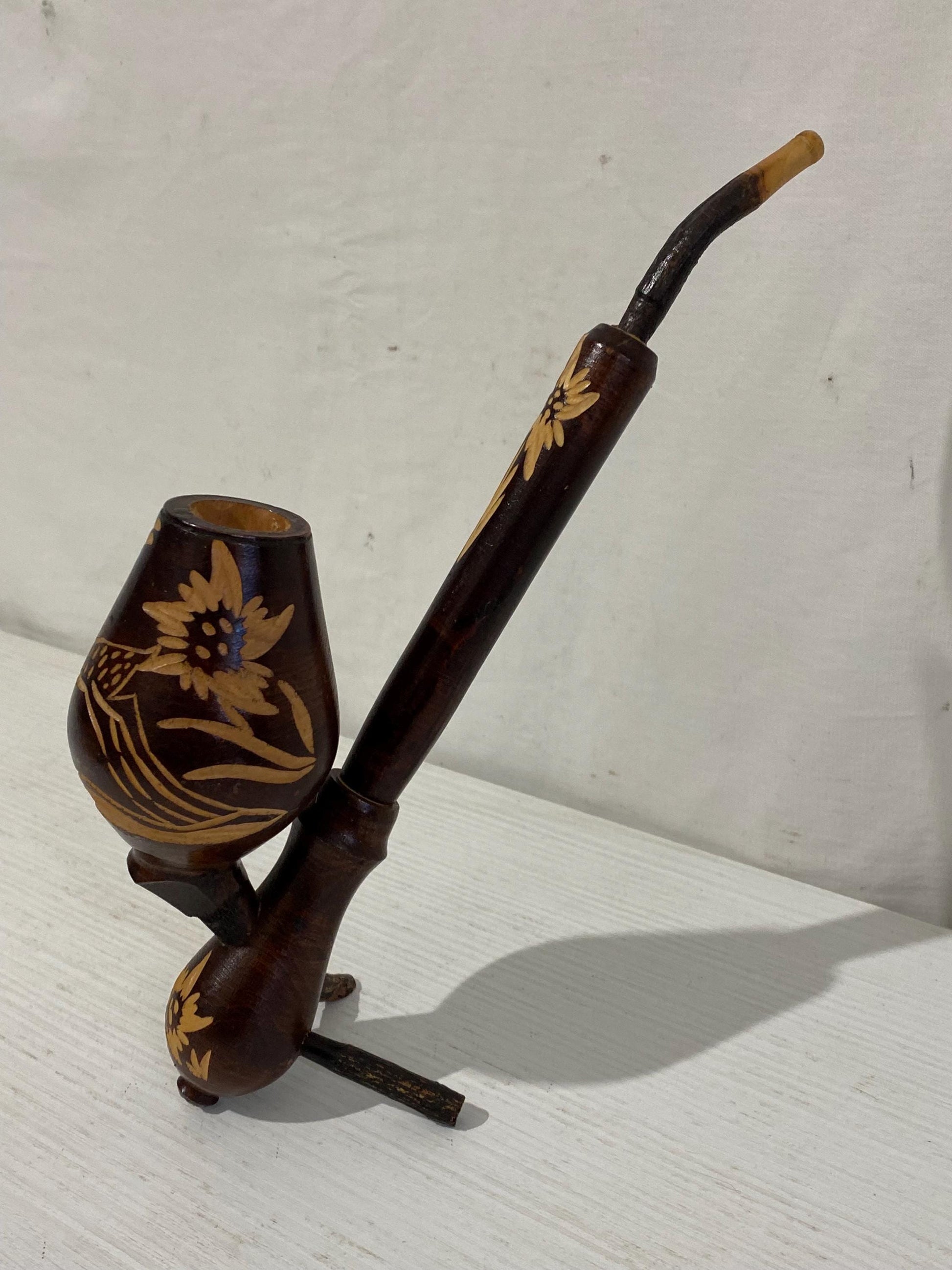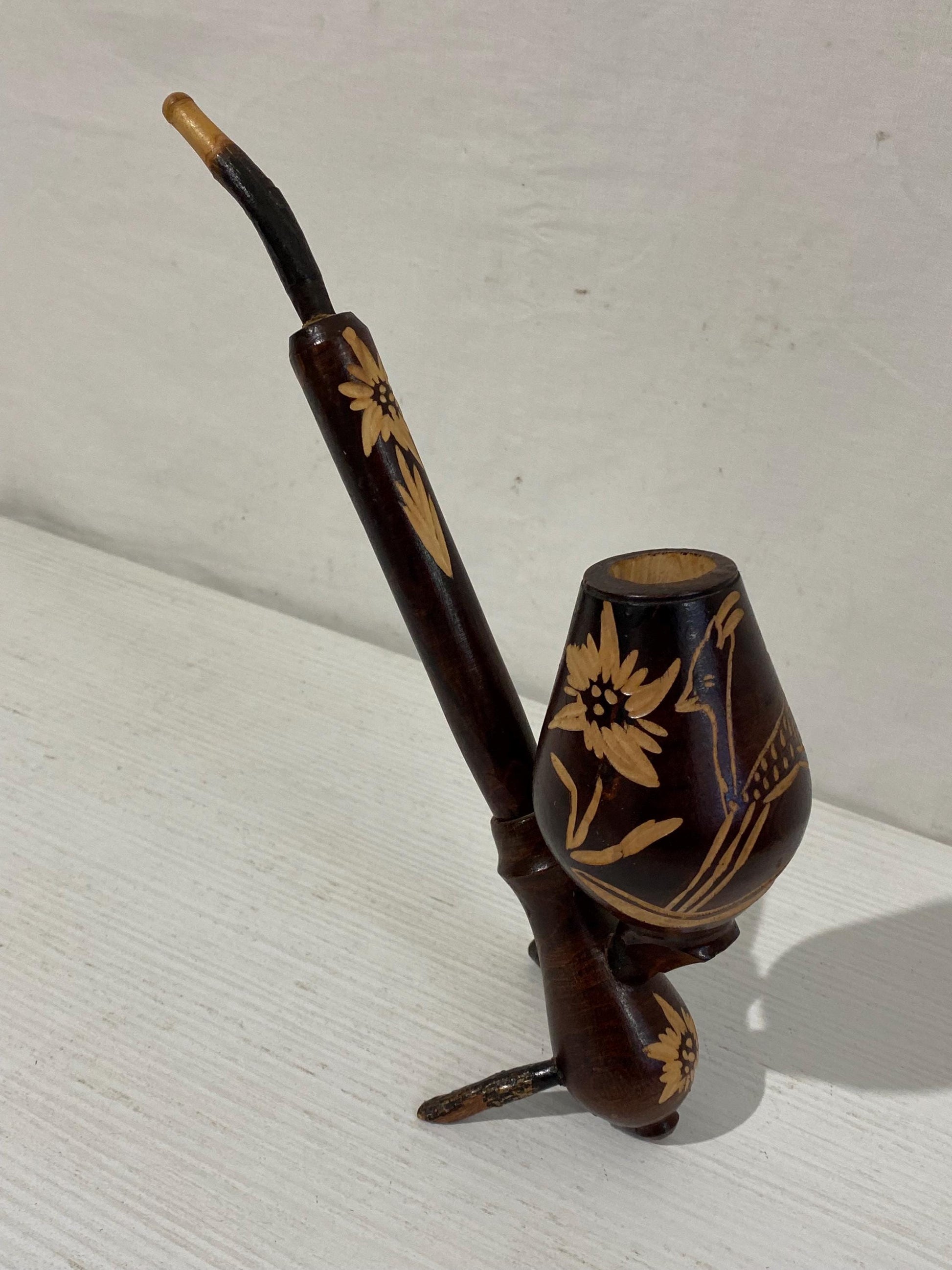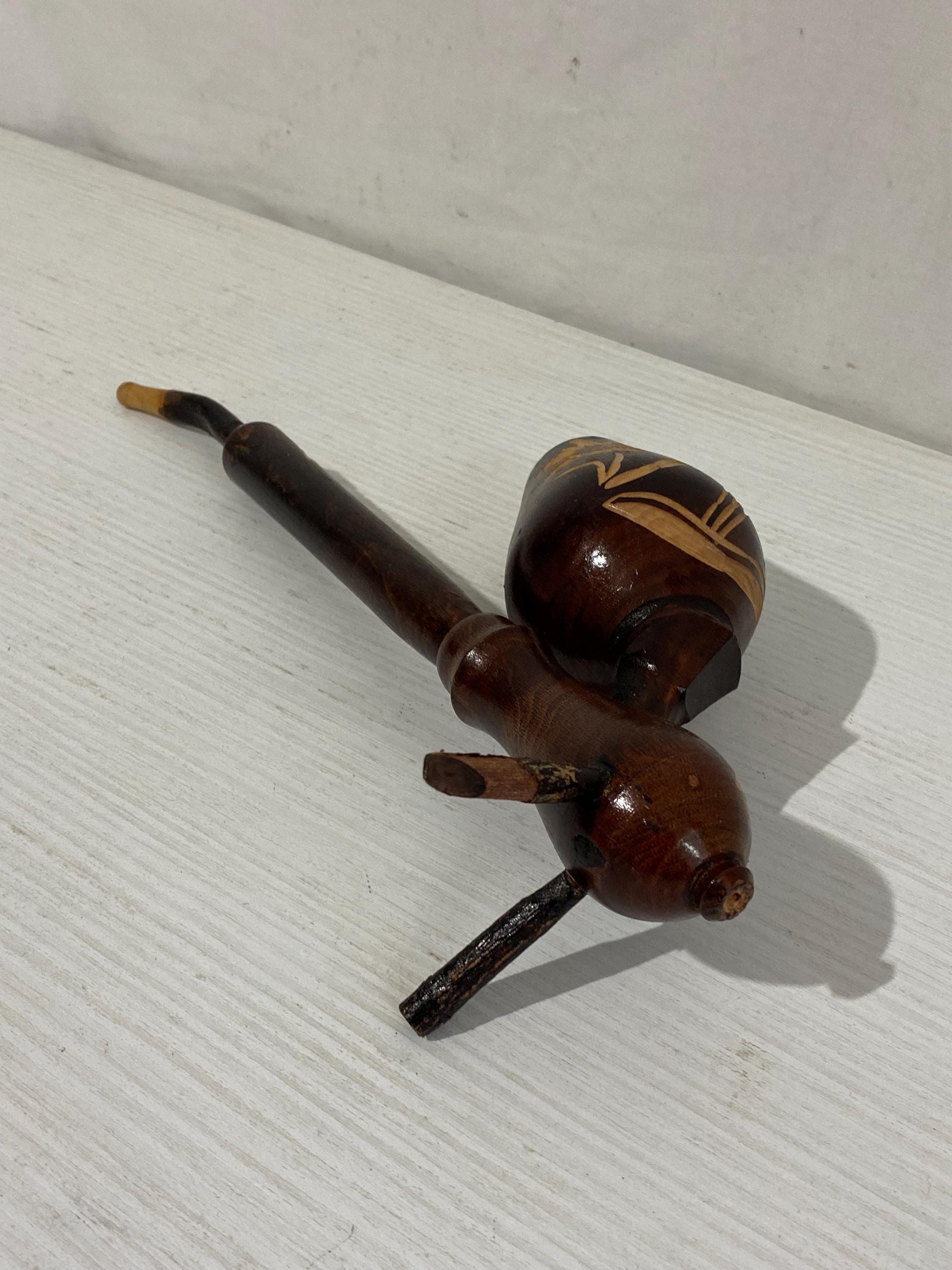 Pipa particolare Funzionante Vintage in Legno Intagliato con Motivo Floreale - 24x20x7 cm