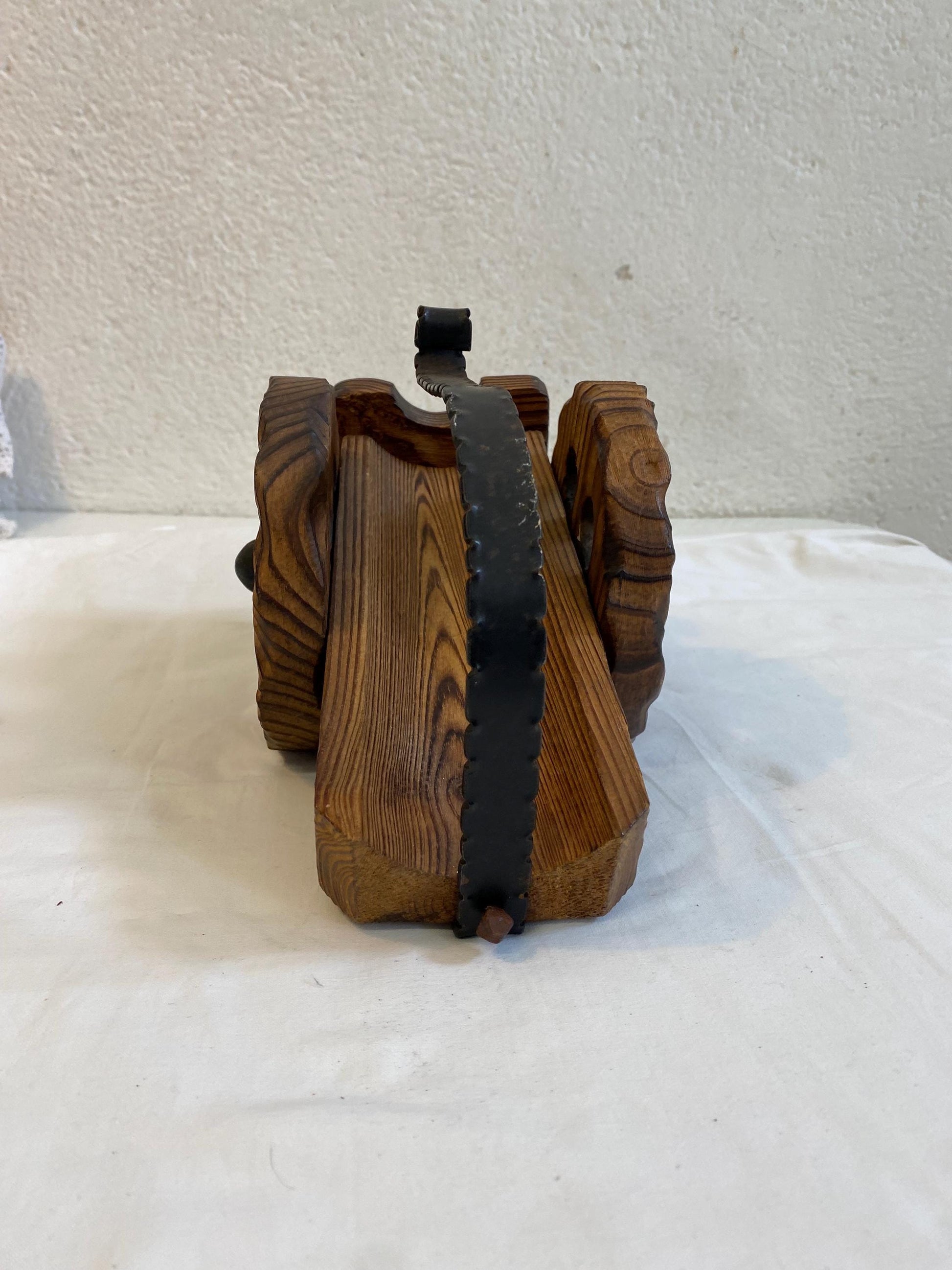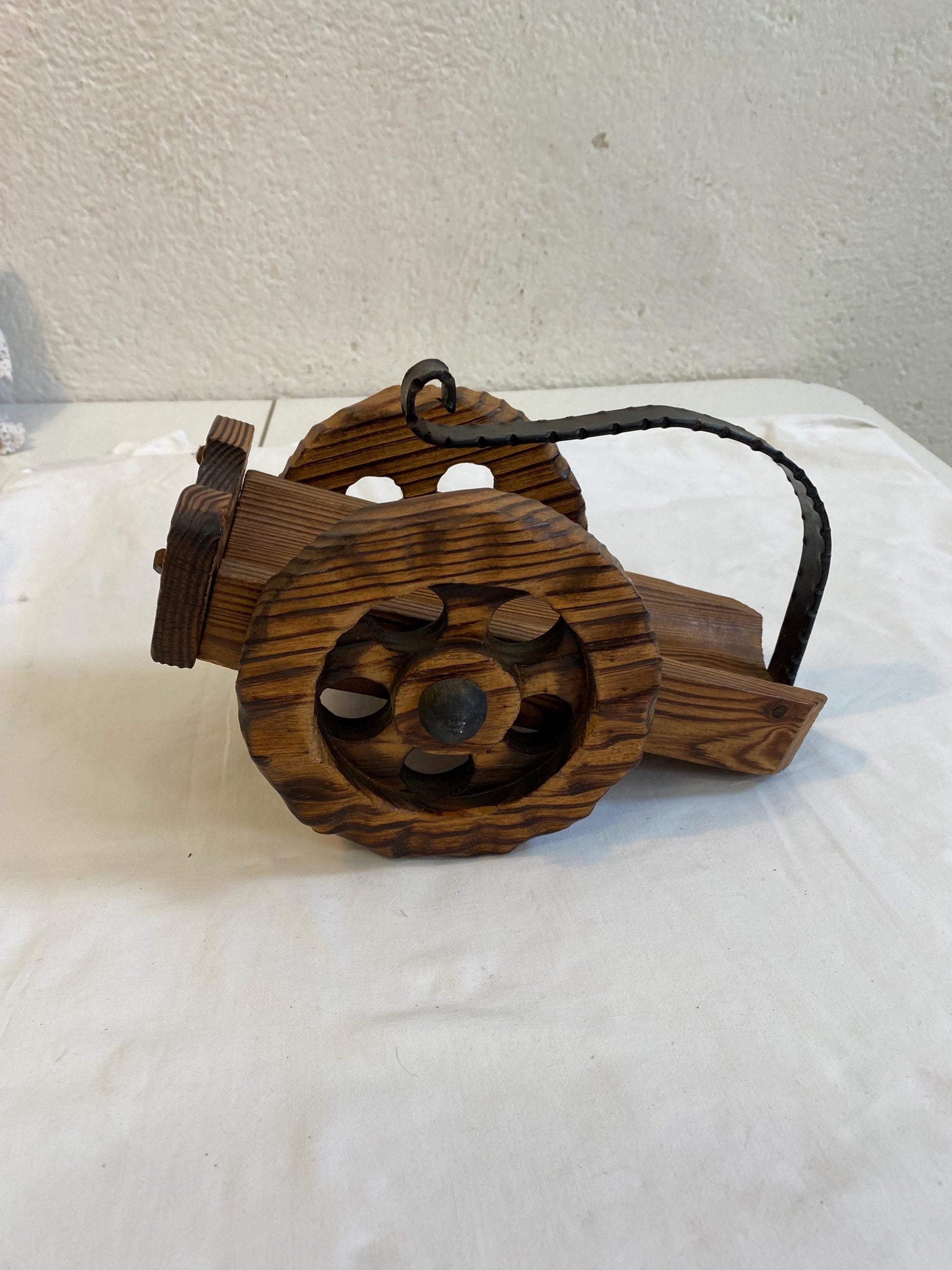 Porta bottiglia in legno a forma di cannone, vintage Made in Spain anni 70, 26x14x17 cm (10.2x5.5x6.7 in), rustico per bar di casa e regalo