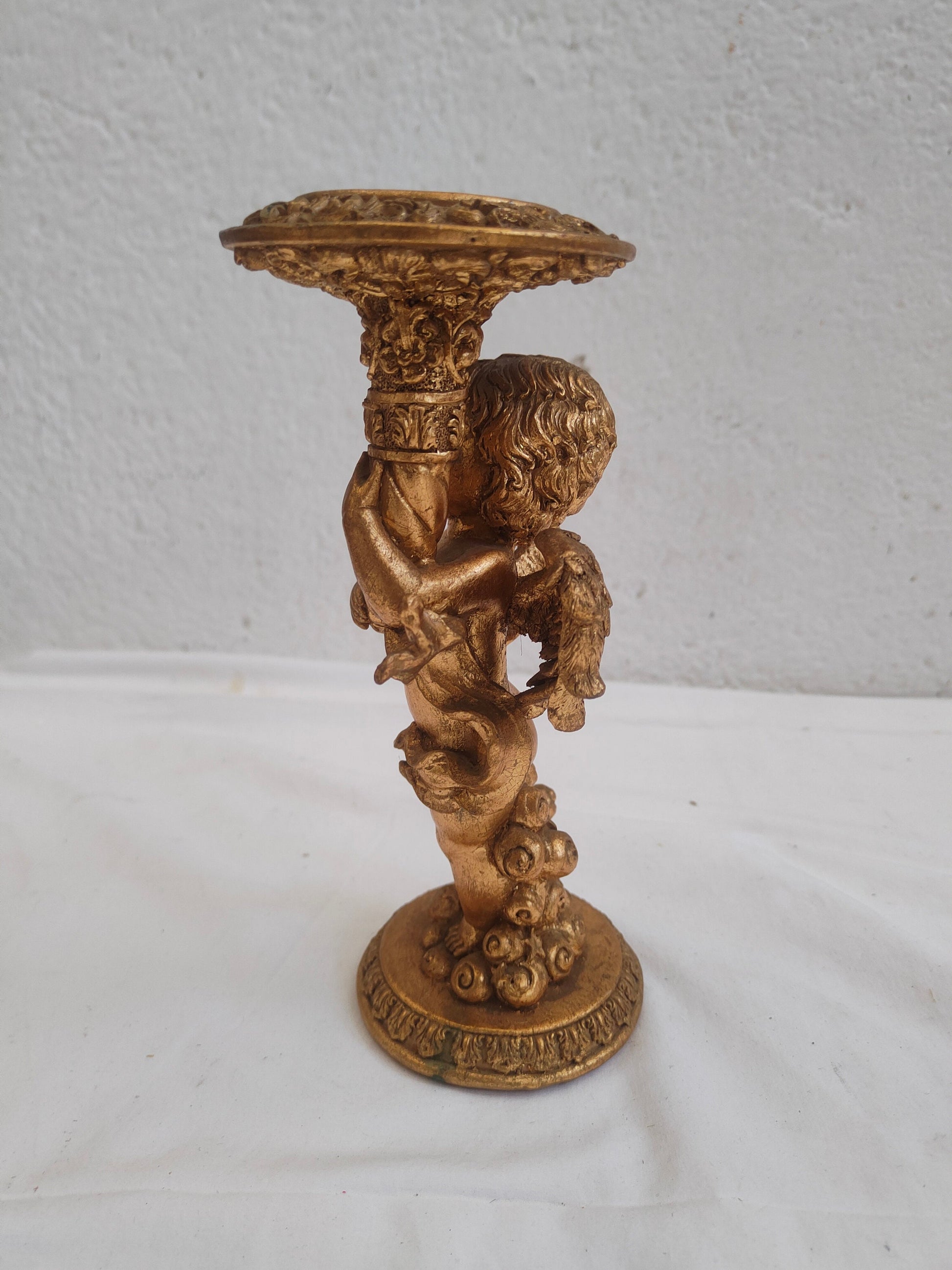 Porta candele vintage, Putto dorato, Porta candele in legno, Porta candele in gesso, Porta candele decorativo, Porta candele d‘epoca, Porta candele con figura di putto, Porta candele dorato, Porta candele artistico, Porta candele shabby chic, Porta candele retrò, Porta candele per arredamento vintage, Porta candele per decorazione d‘interni