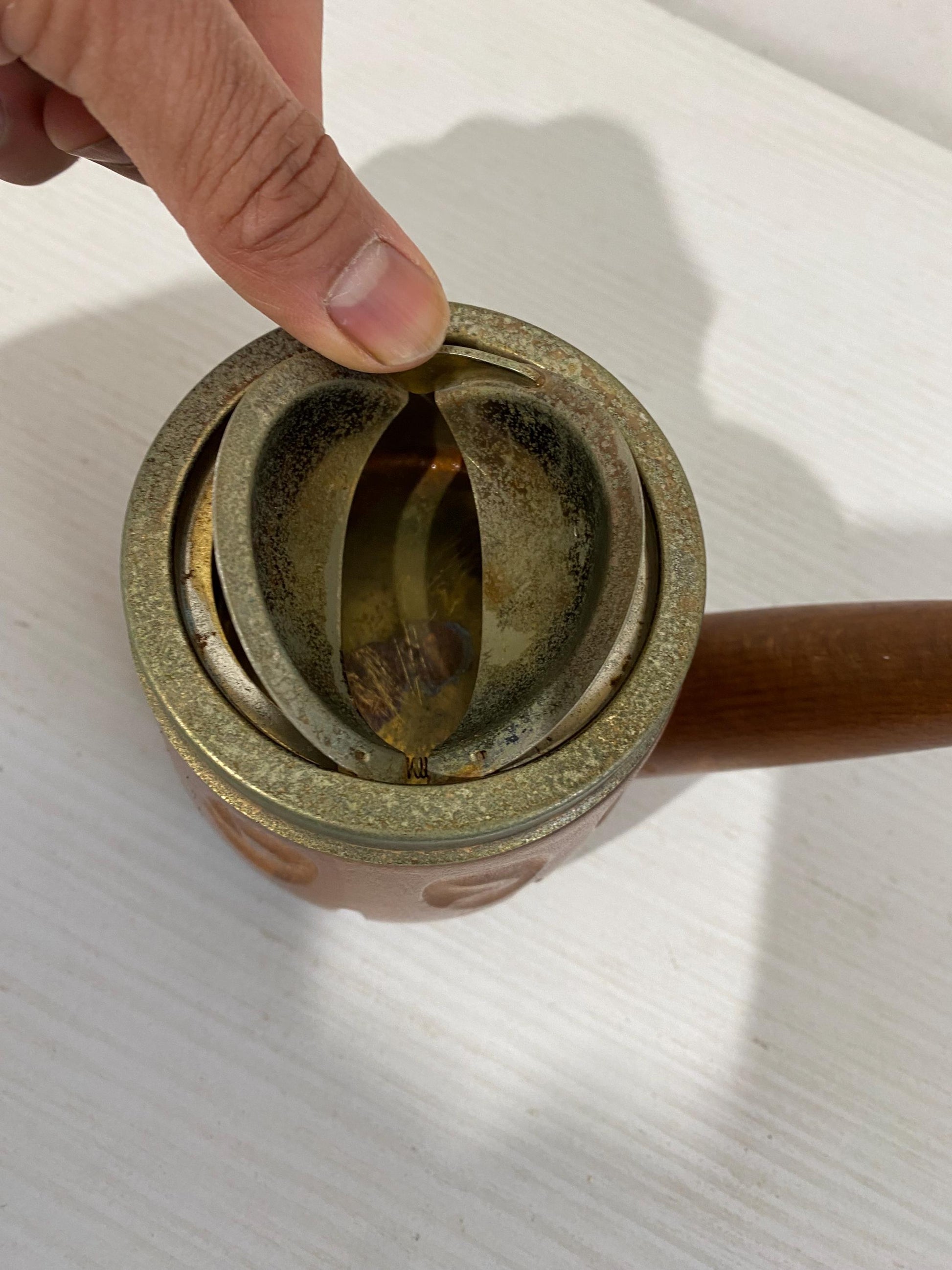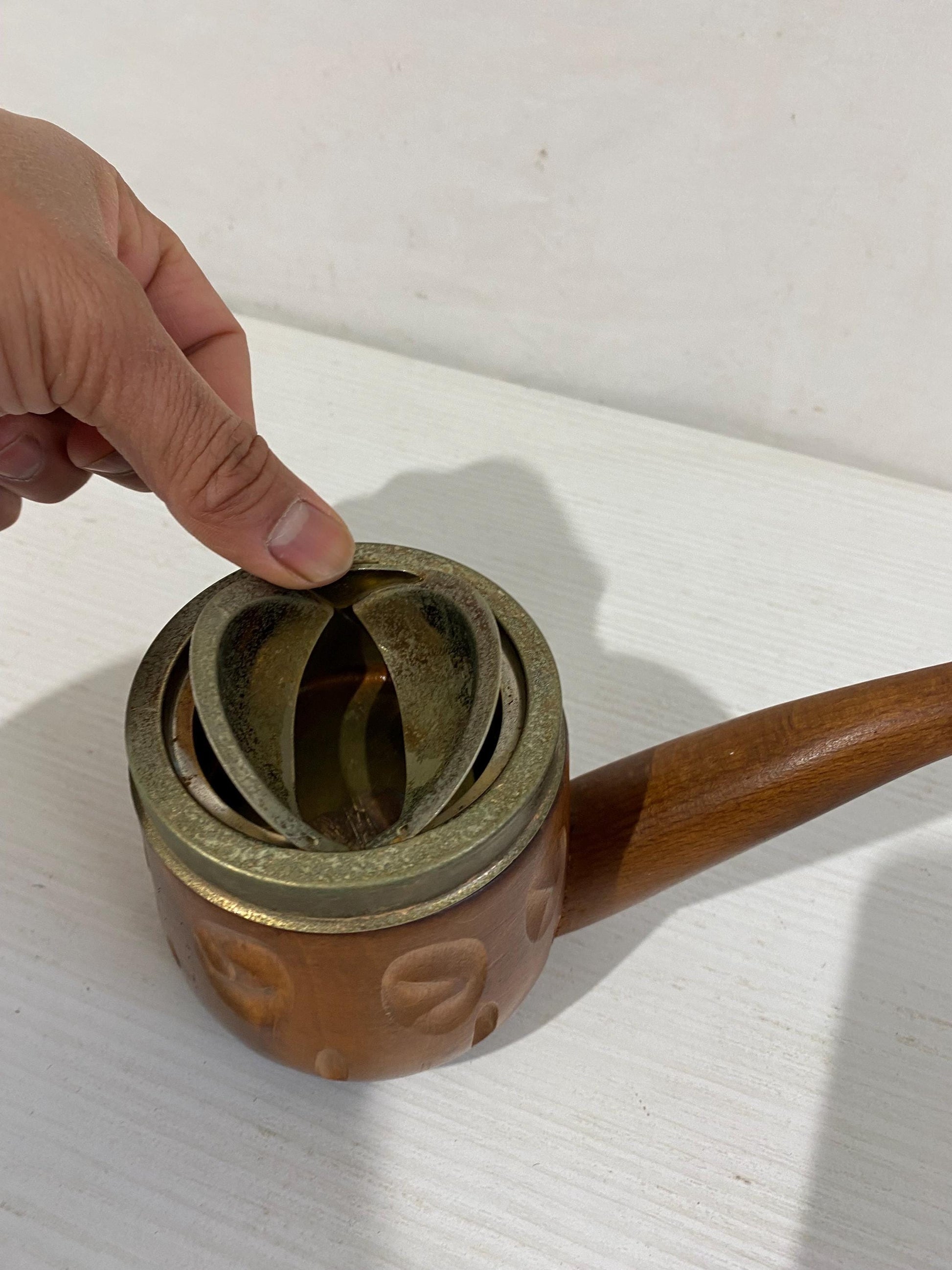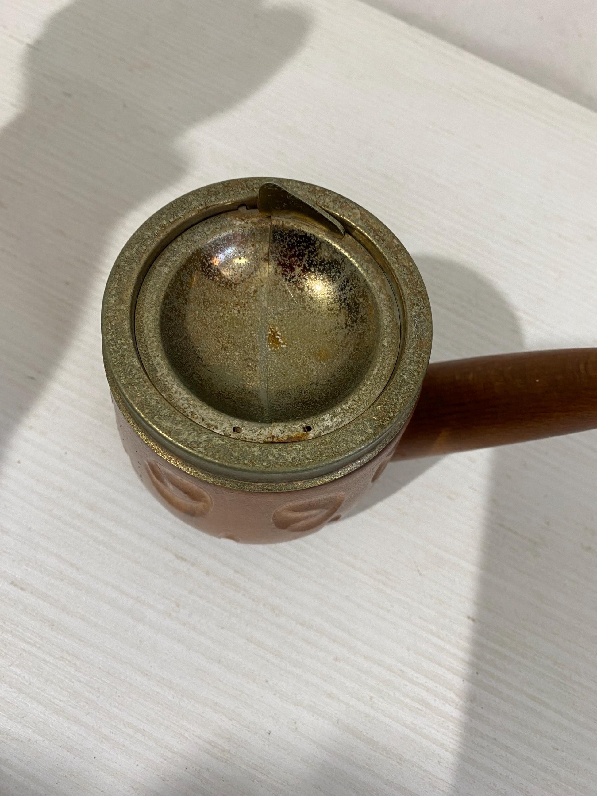 Rendi unico il tuo spazio con questo elegante posacenere vintage a forma di pipa, realizzato in legno con coperchio in metallo. Un oggetto di design retrò che unisce funzionalità e stile, perfetto per collezionisti o come complemento d‘arredo originale. Il meccanismo a molla del coperchio consente di spegnere le sigarette in modo sicuro e pulito, evitando la dispersione di cenere.