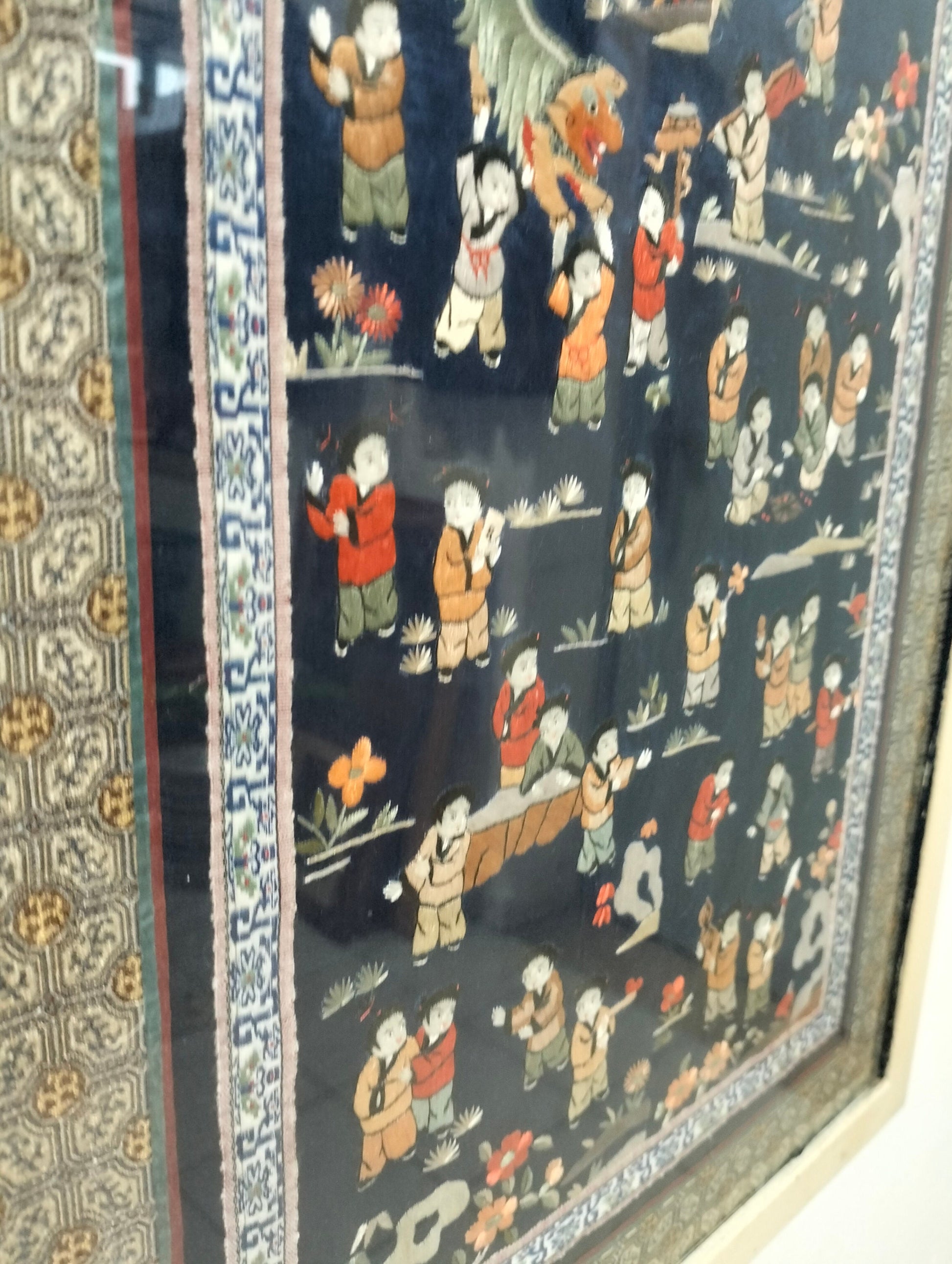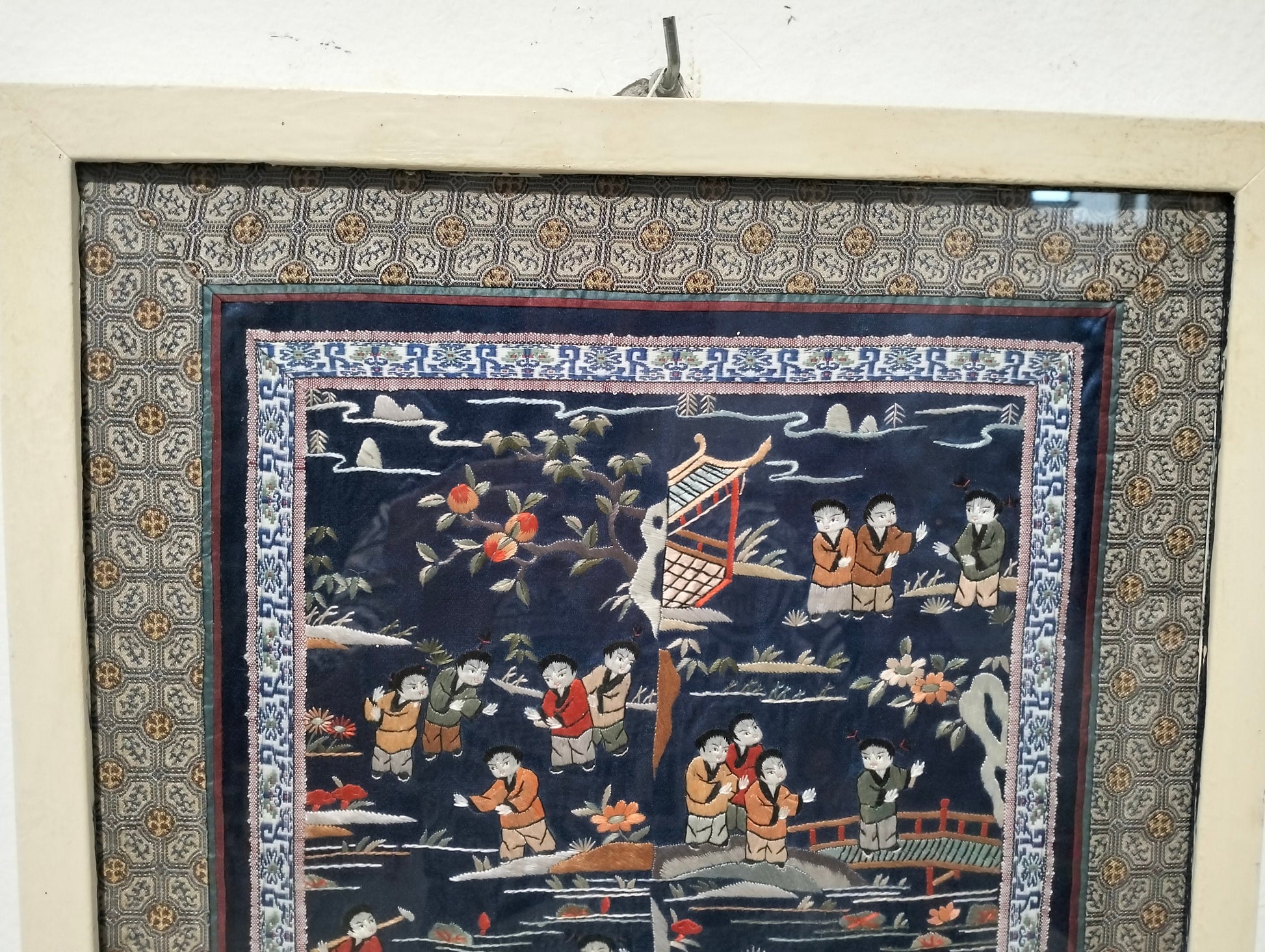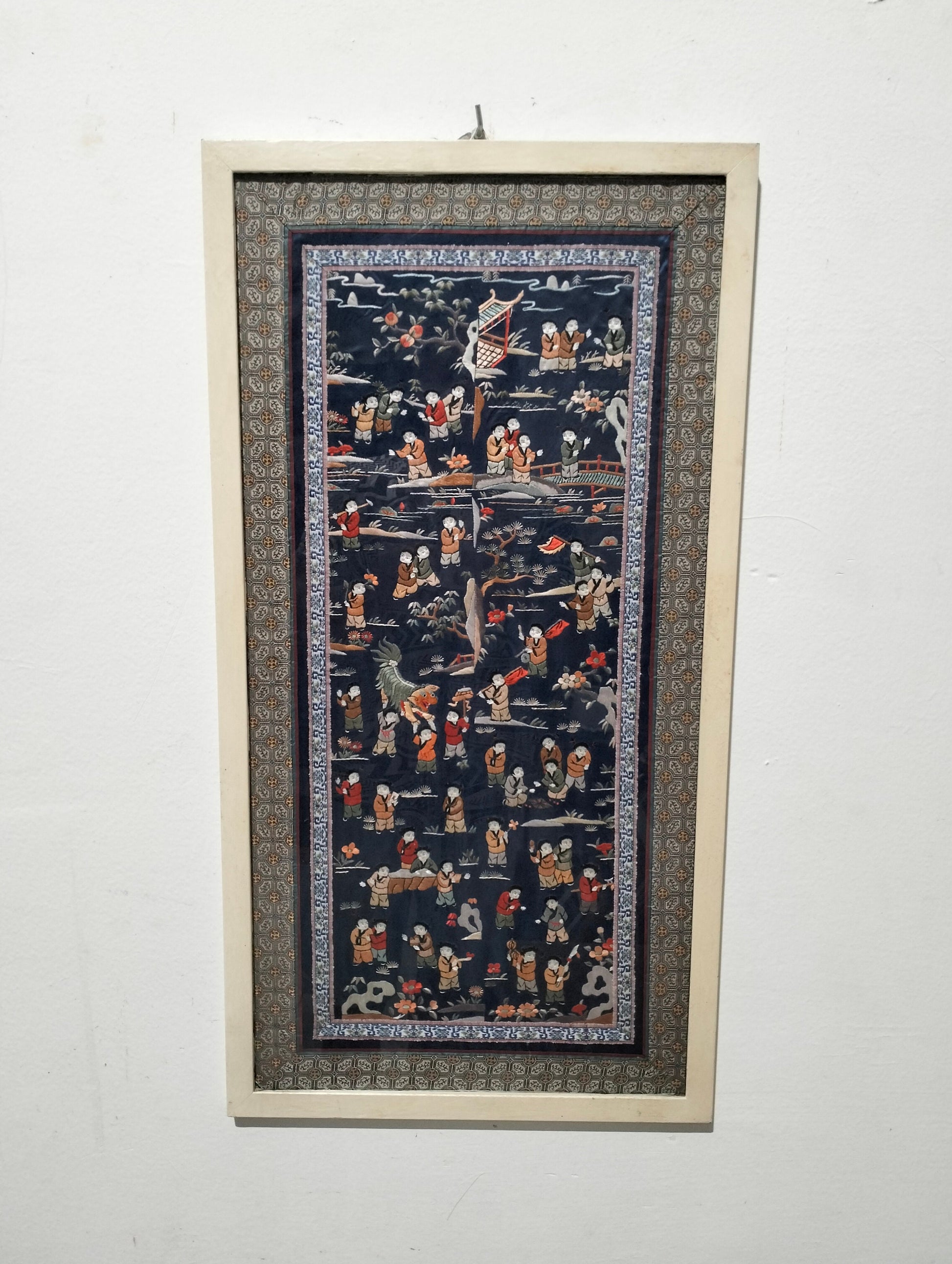 Quadro Asiatico, Ricamo su Seta, Figure Asiatiche, Drago, Artigianato, Tecnica Manuale.
