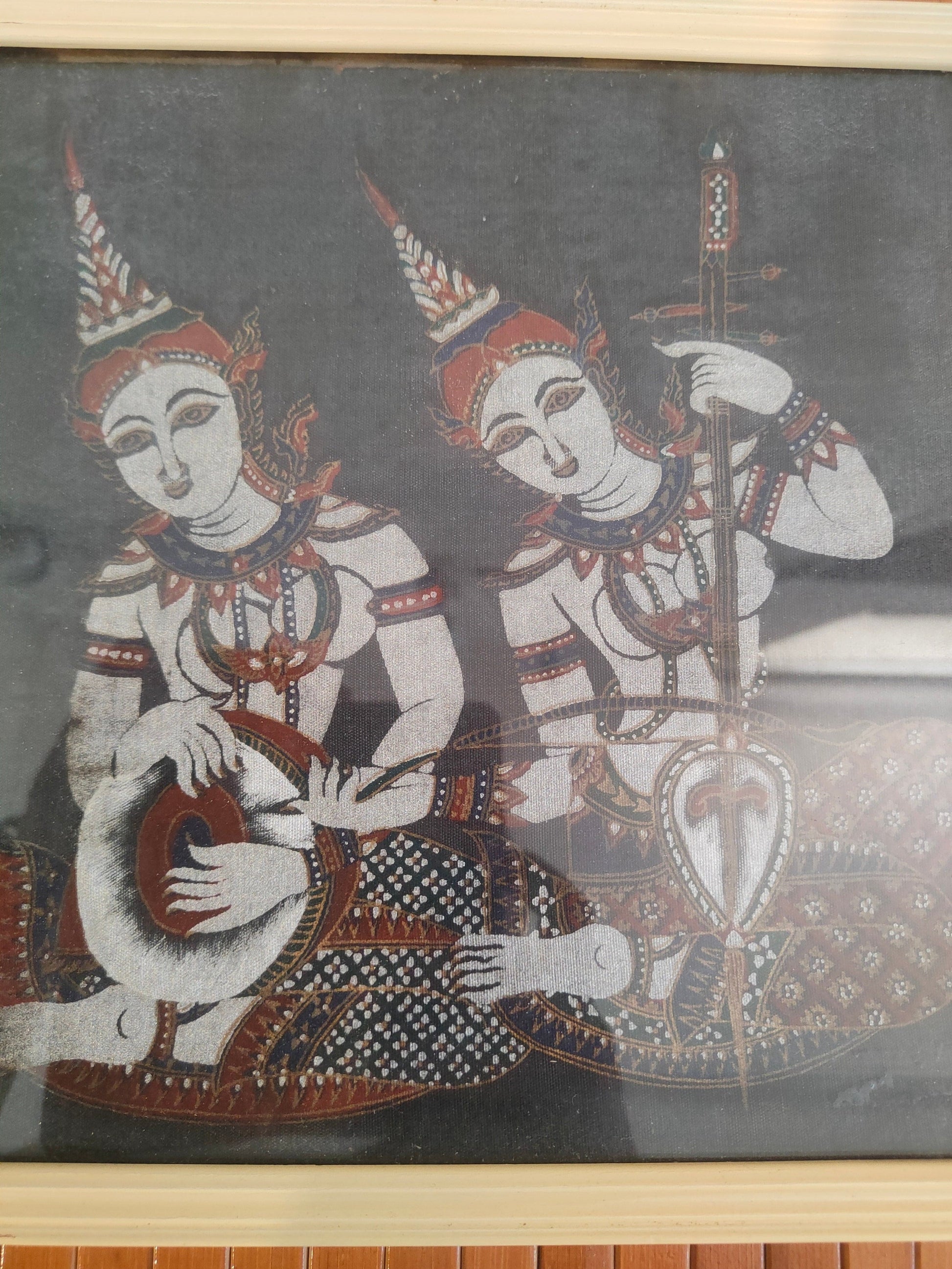 quadro stampo su tessuto raffigurante due musiciste tailandesi