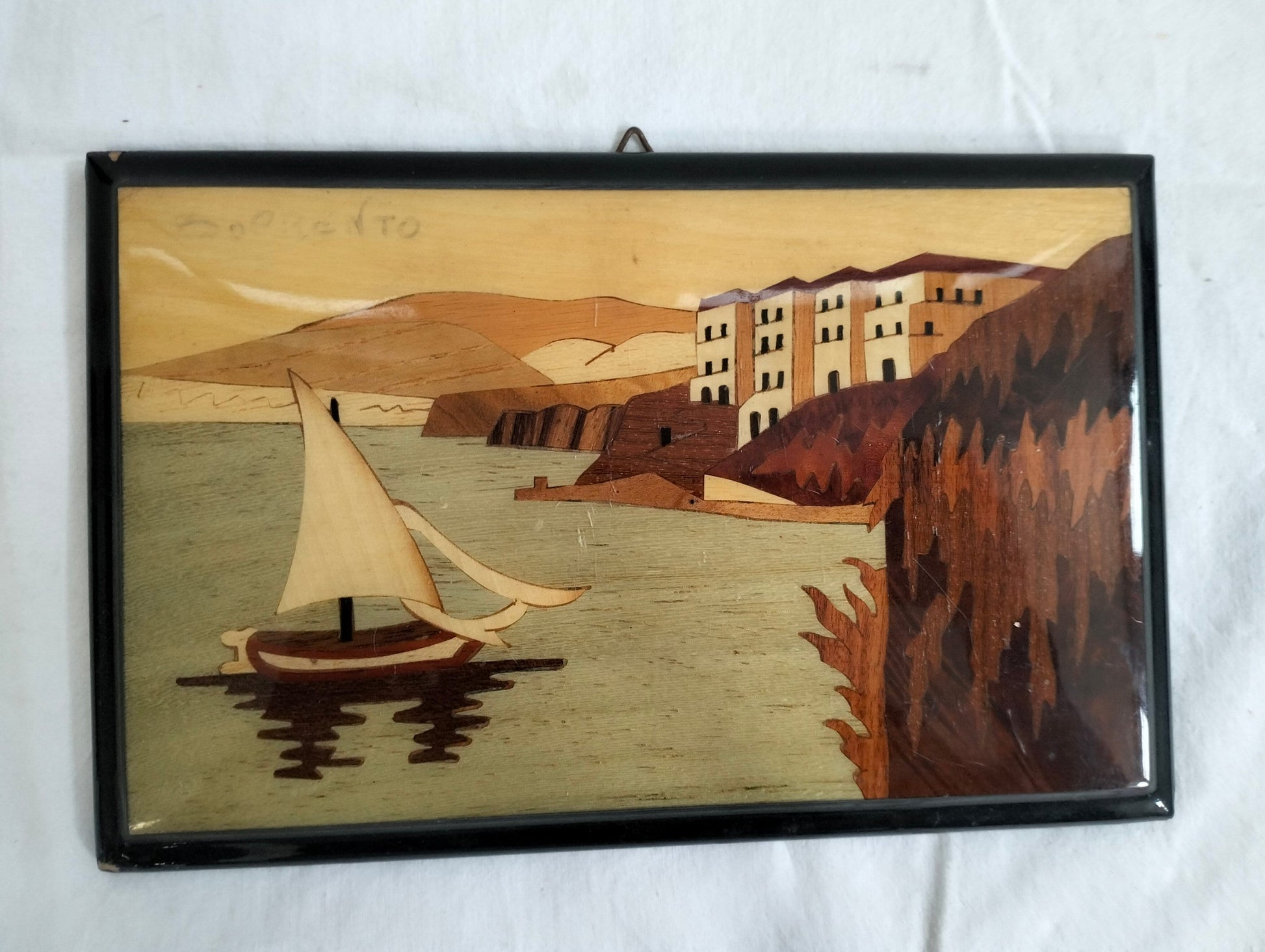 Ideale come regalo fatto in Italia, questo quadro rappresenta un autentico souvenir di Sorrento e della costiera amalfitana. Aggiungi un tocco di eleganza e cultura mediterranea alla tua casa o sorprendi qualcuno con un dono artigianale di alta qualità. La bellezza senza tempo di questa scena marittima renderà ogni ambiente più accogliente e ricco di fascino.