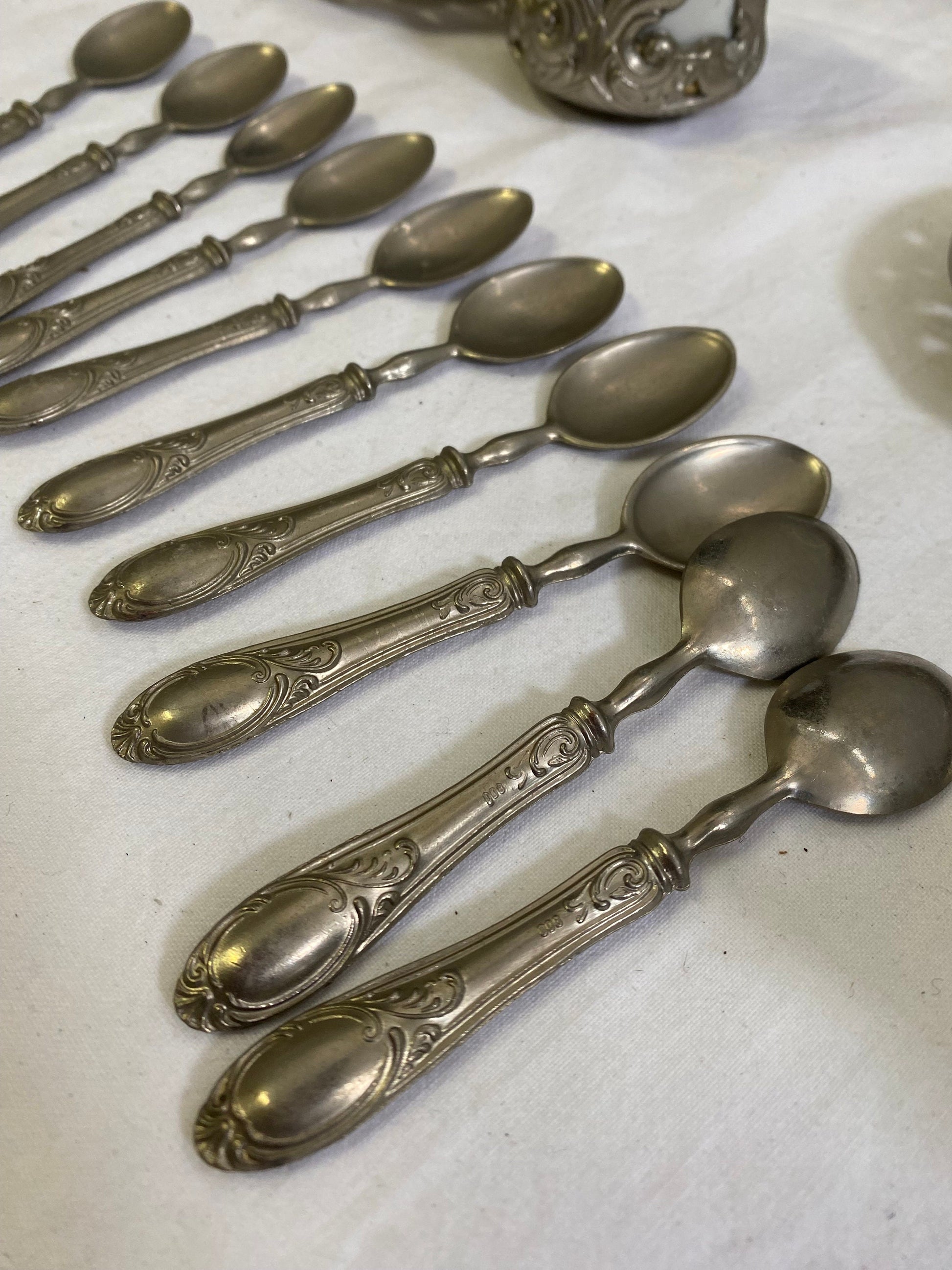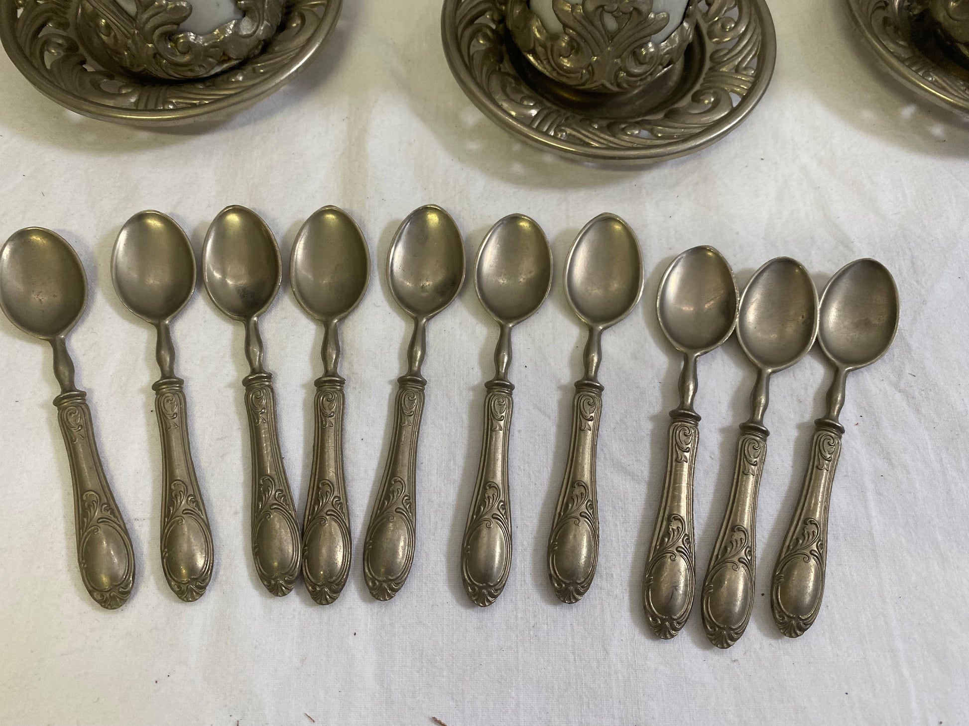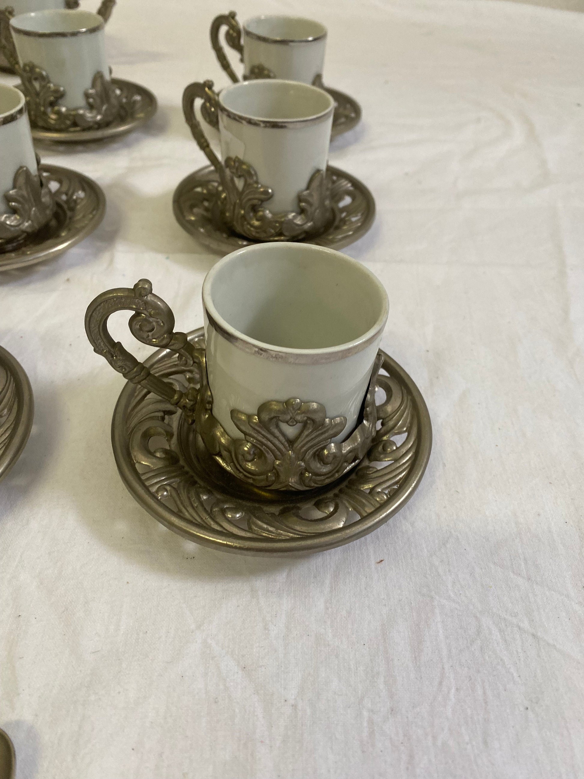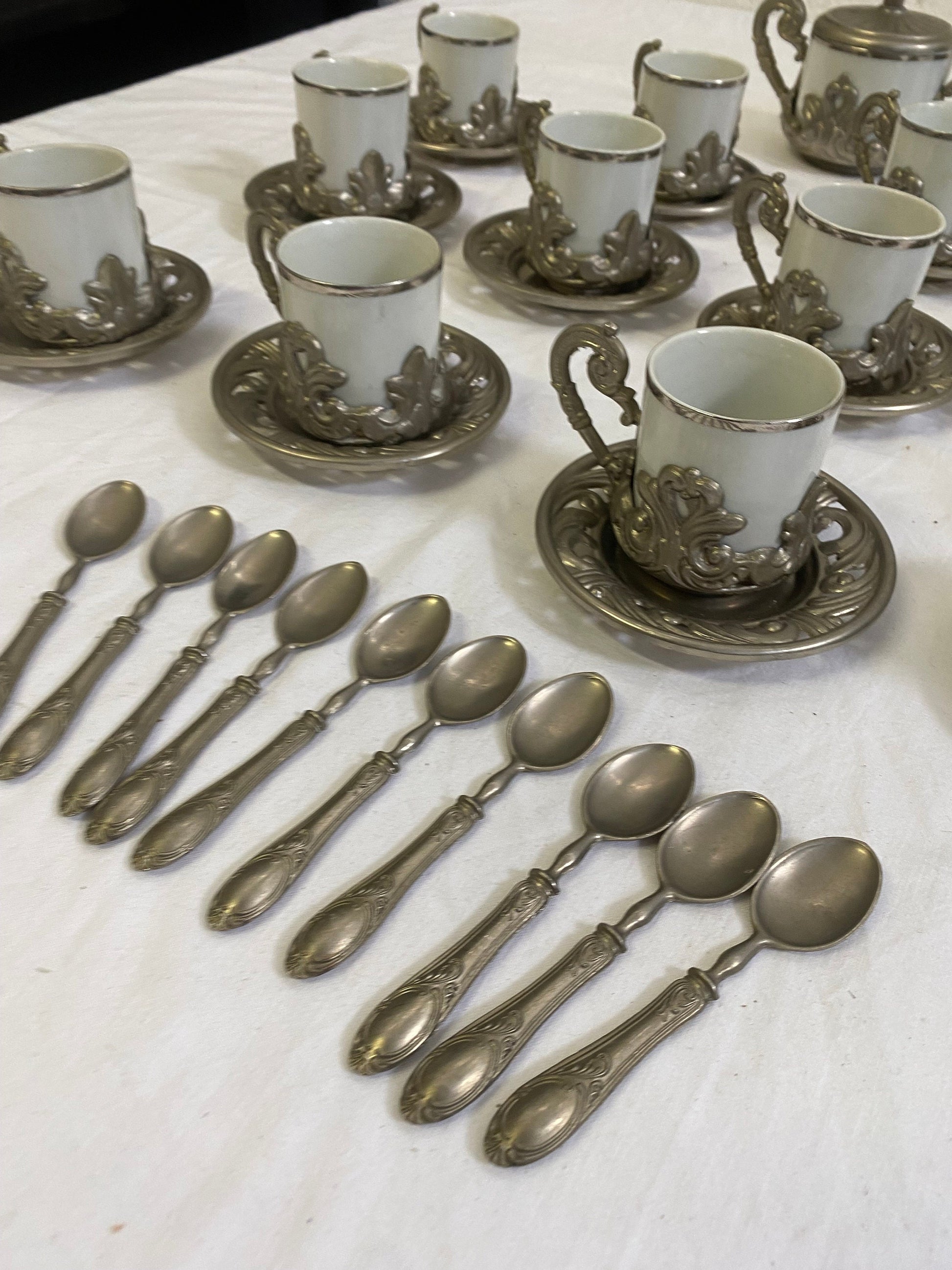 Servizio Caffè Vintage per 12 in Ceramica e Peltro con Zuccheriera: Un Tocco di Eleganza Intramontabile per la Tua Tavola