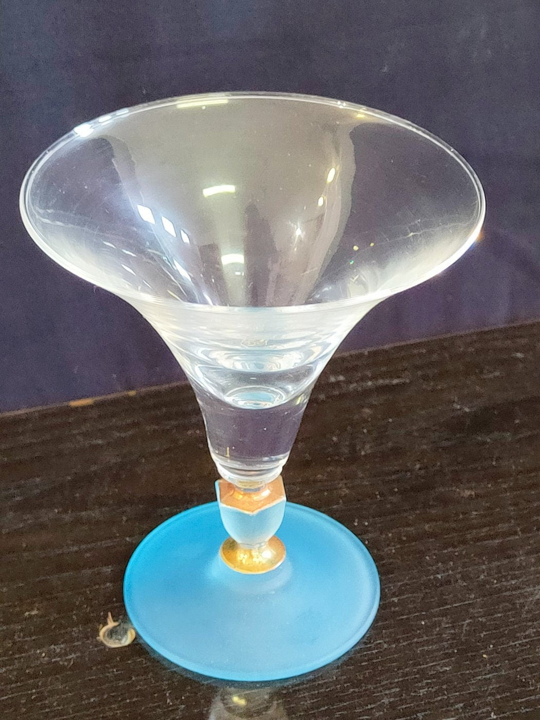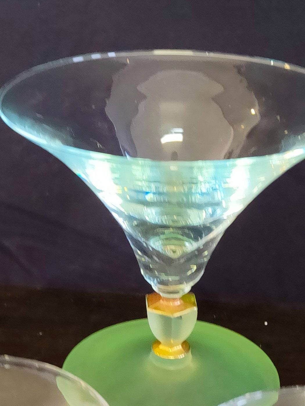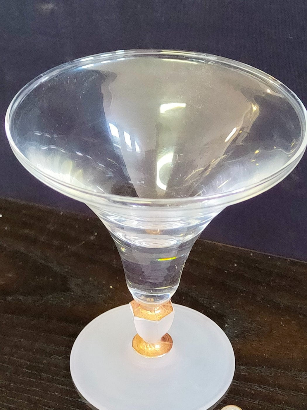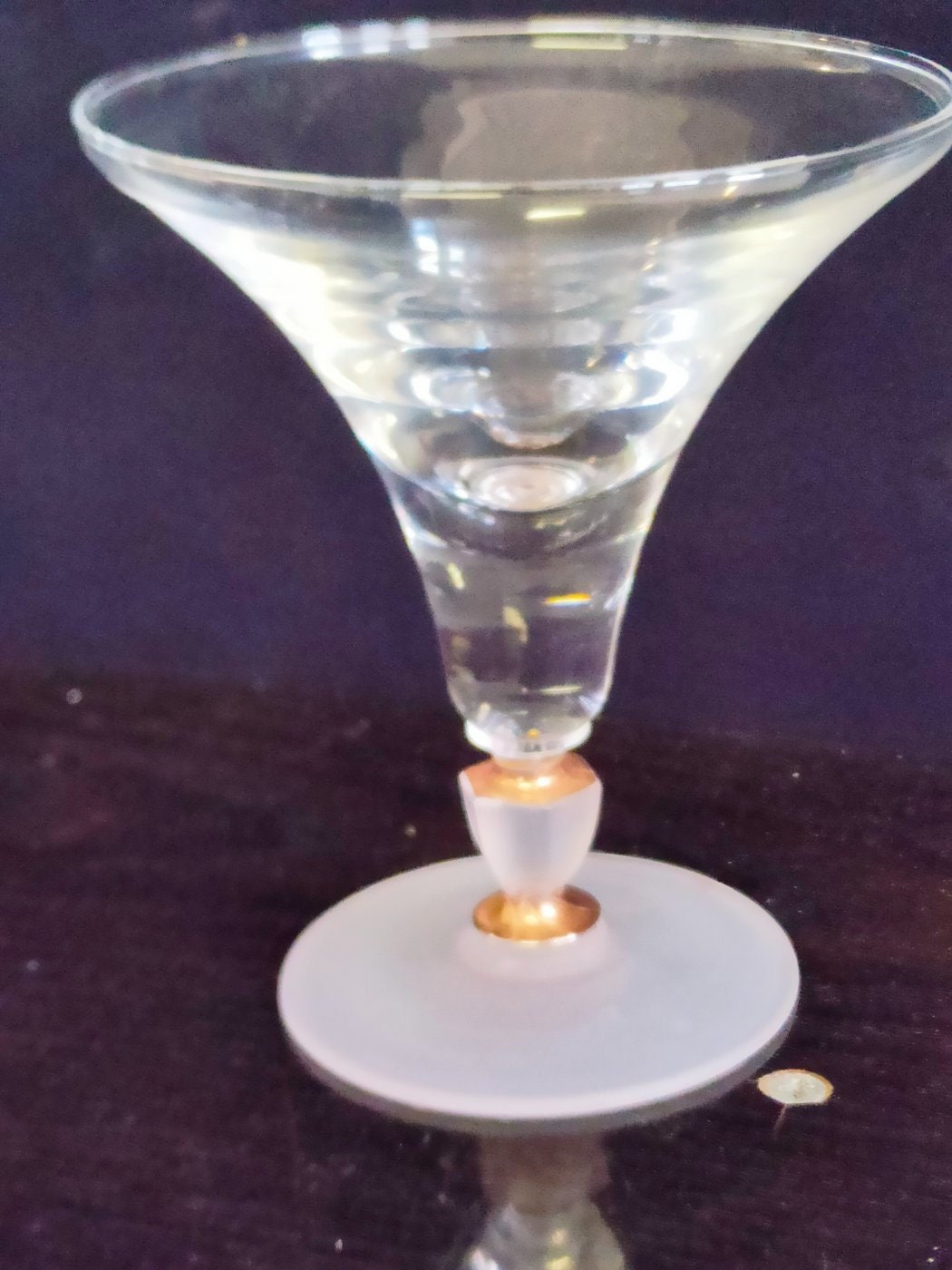 Ogni coppa è finemente realizzata in cristallo di alta qualità, che dona loro una chiarezza e una lucentezza straordinarie. Le basi delle coppe sono state abilmente colorate di un tono dorato, che aggiunge un tocco di calore e opulenza al loro design.