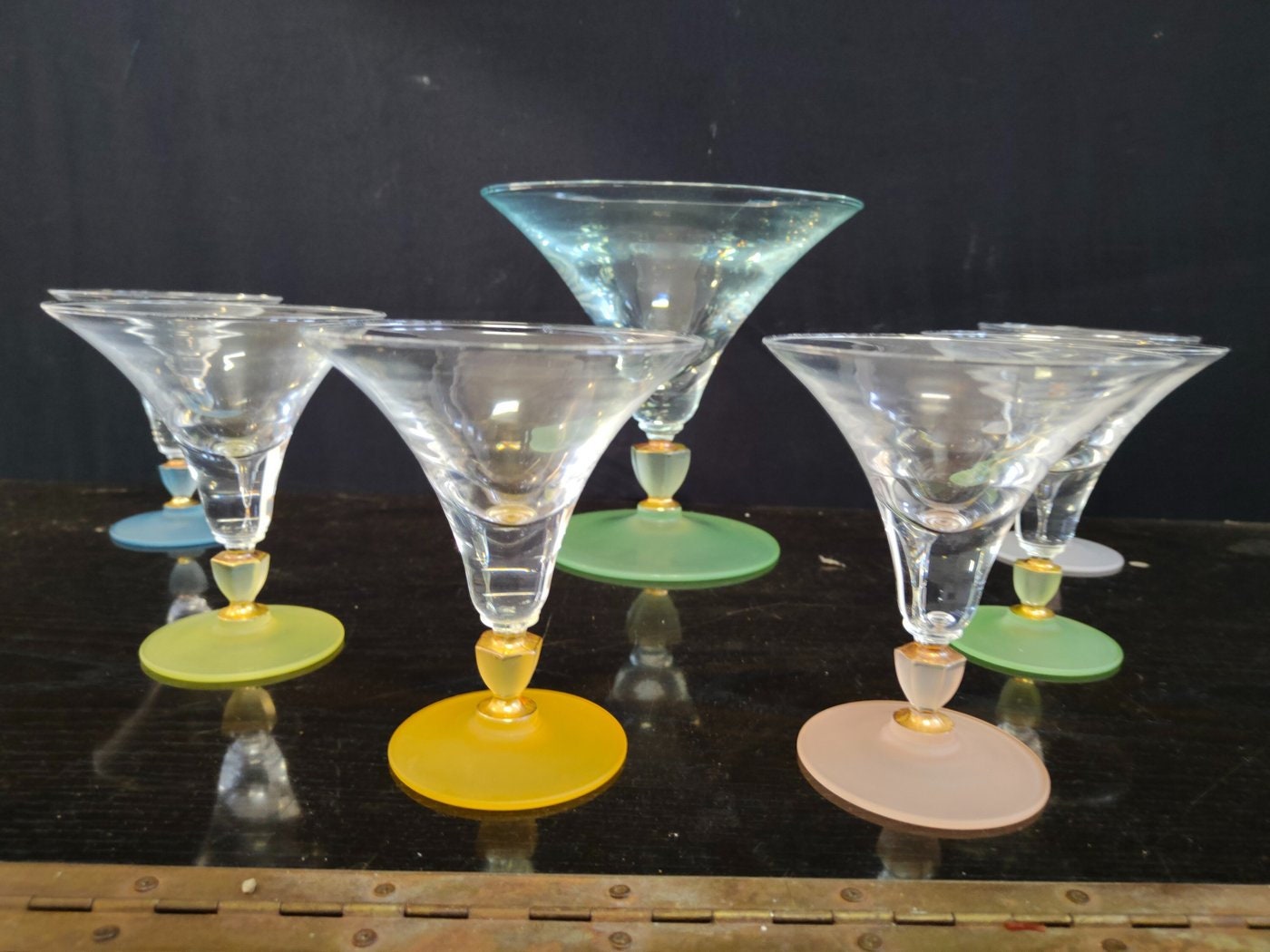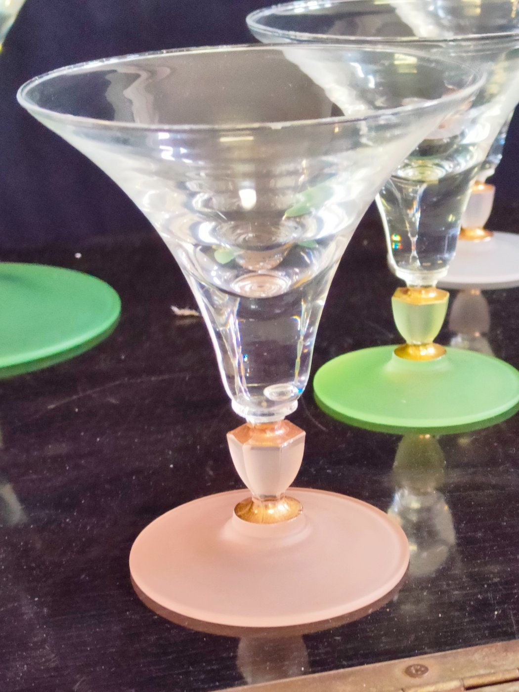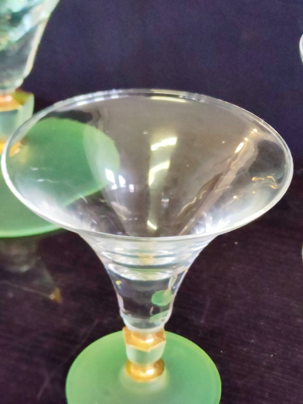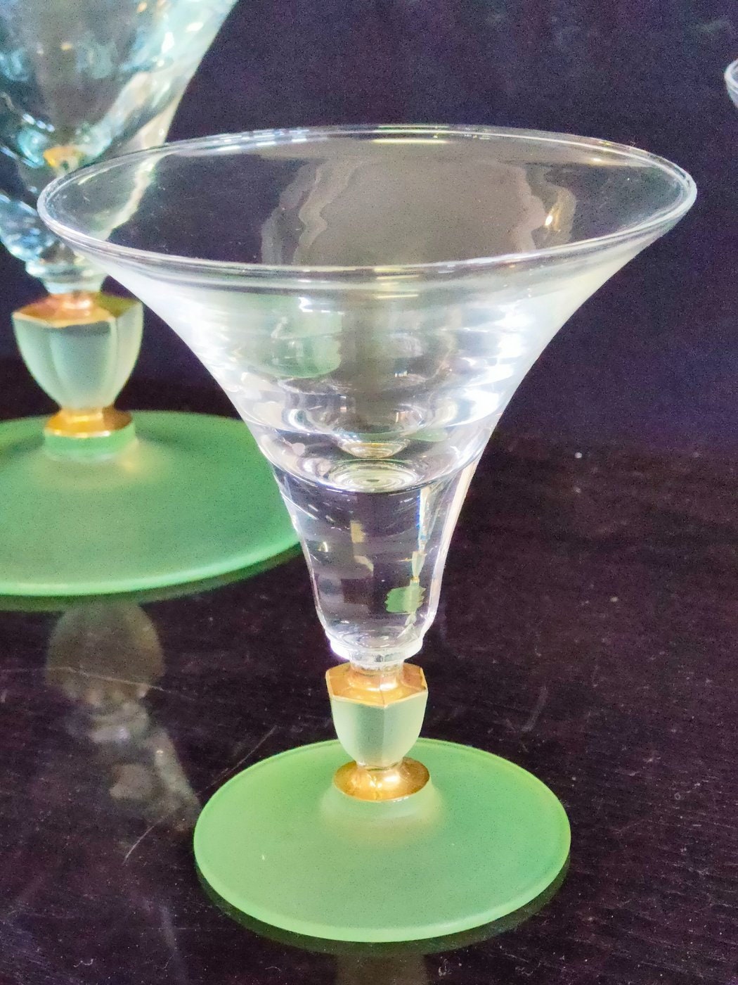 Ogni coppa è finemente realizzata in cristallo di alta qualità, che dona loro una chiarezza e una lucentezza straordinarie. Le basi delle coppe sono state abilmente colorate di un tono dorato, che aggiunge un tocco di calore e opulenza al loro design.