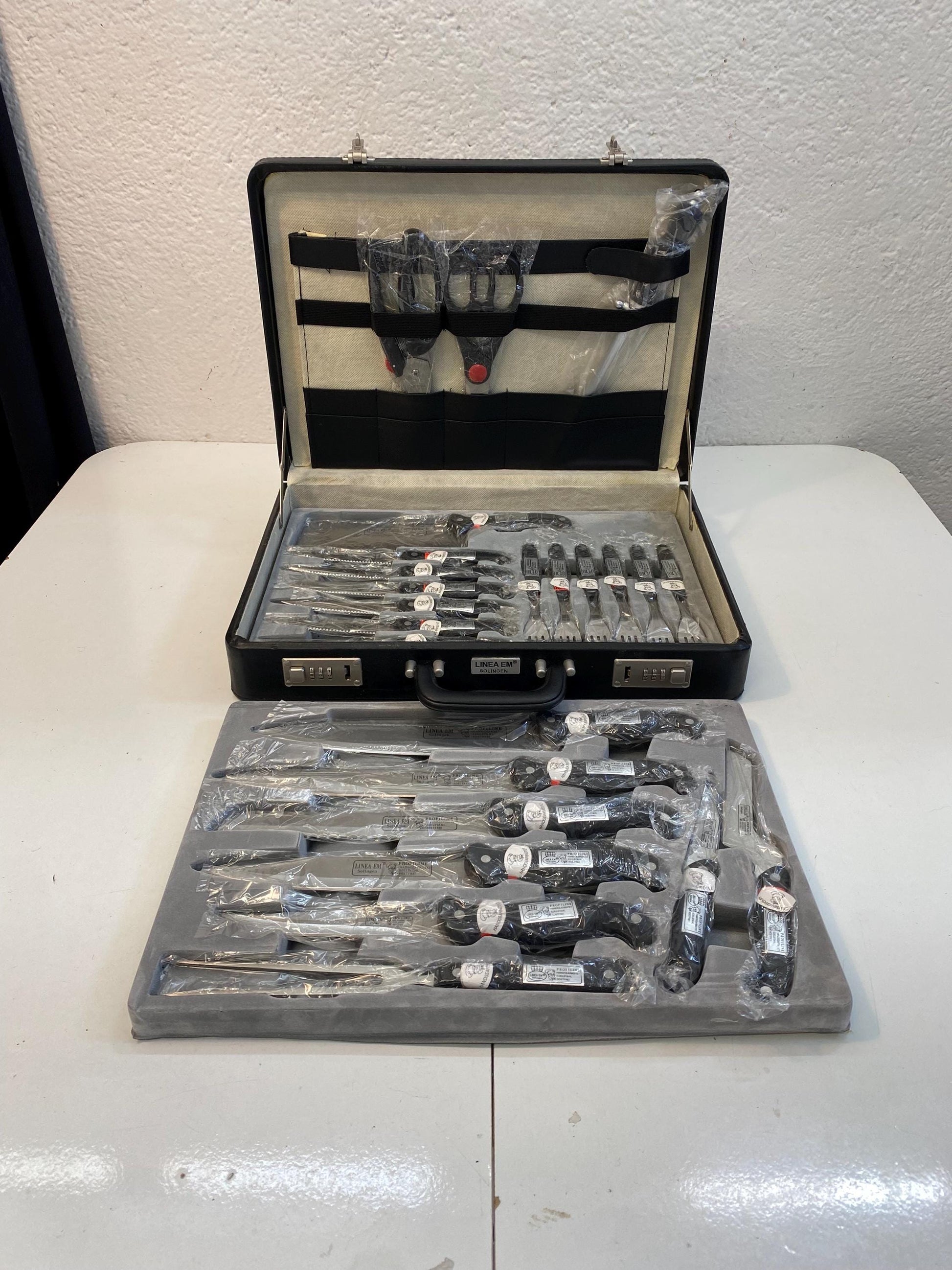 Nuovo, mai utilizzato. Tutti gli utensili sono ancora sigillati nella plastica originale. La valigetta è in ottime condizioni, con minimi segni dovuti allo stoccaggio.