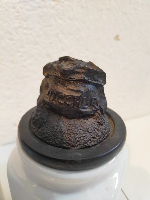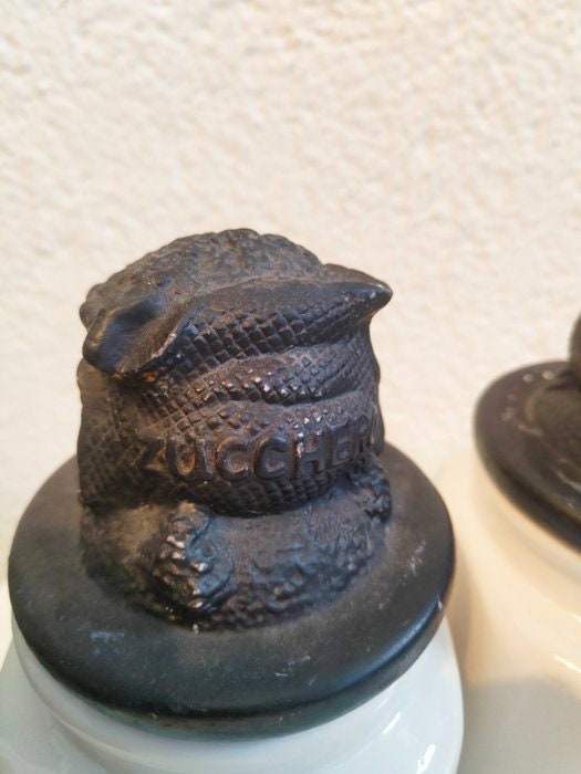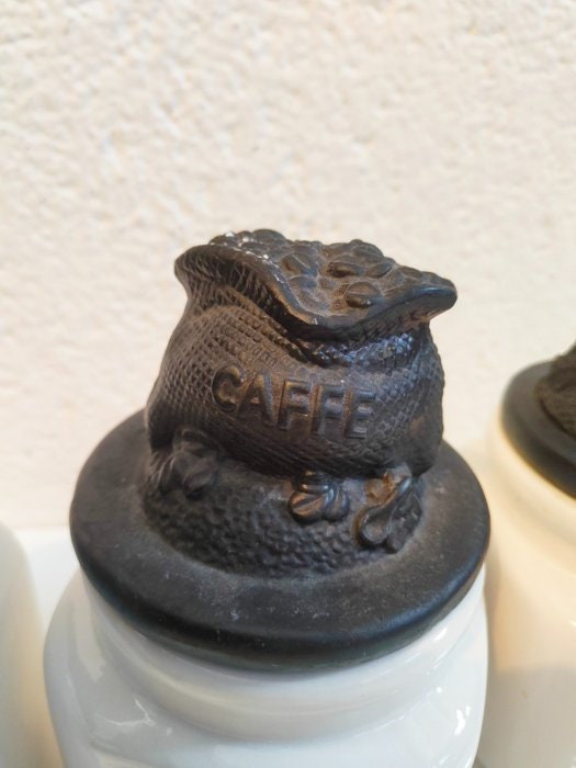 Set di Barattoli Vintage in Ceramica Bianca per Zucchero e Caffè con Coperchi