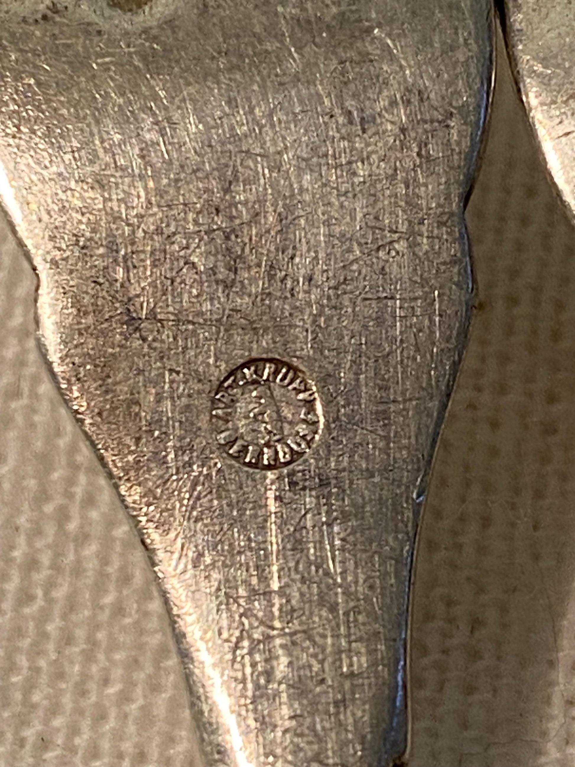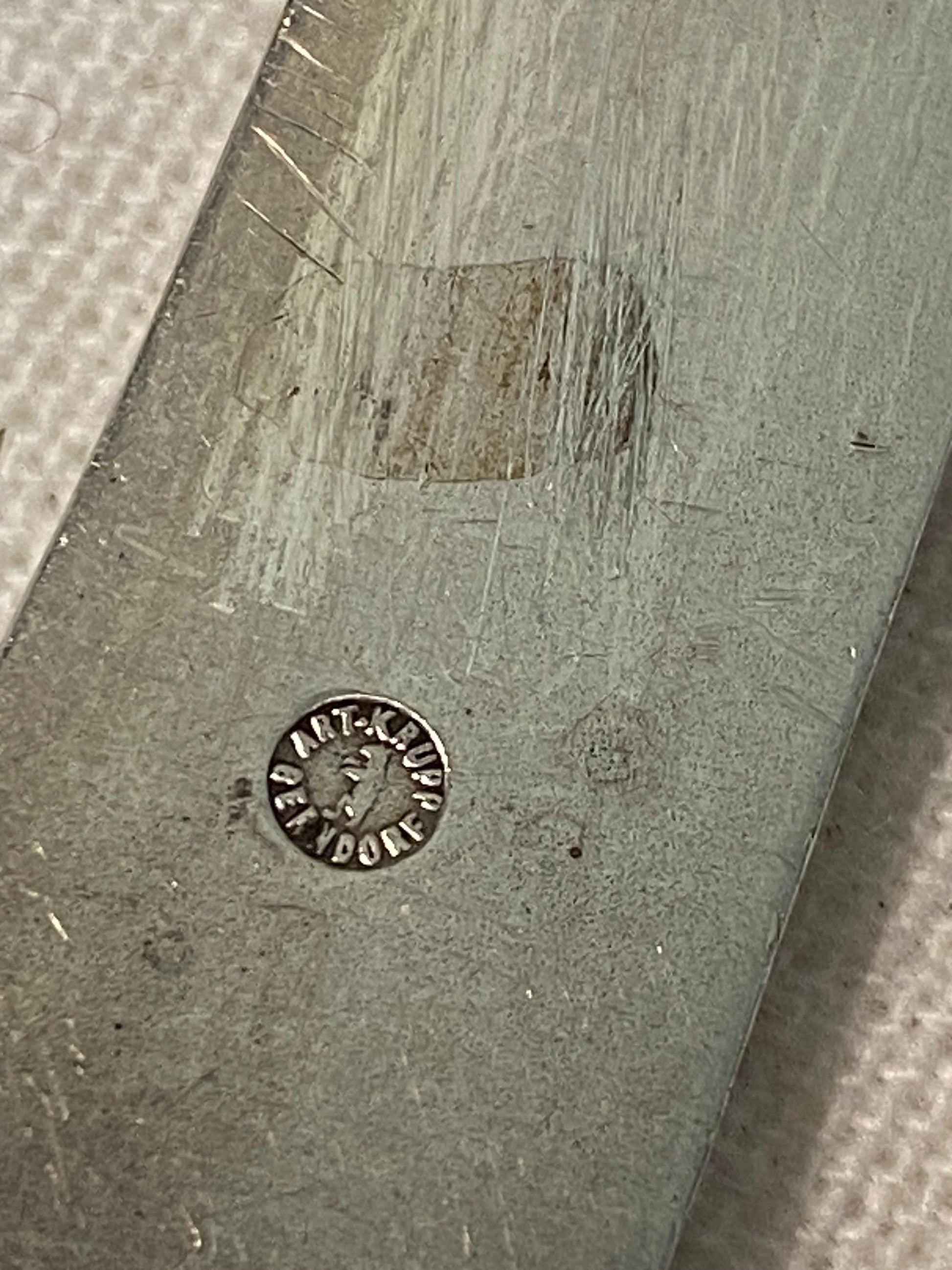 Splendido set di posate antiche con manici decorati a mano in rilievo, realizzato dall‘iconica Art-Krupp Berndorf. Questo raro set include 5 coltelli e 4 forchette, un esempio perfetto di eleganza d‘epoca e artigianato di alta qualità. Ogni pezzo è caratterizzato da punzoni autentici. Ottimo per collezionisti e amanti dell‘antiquariato. Le condizioni sono eccellenti considerando l‘età.